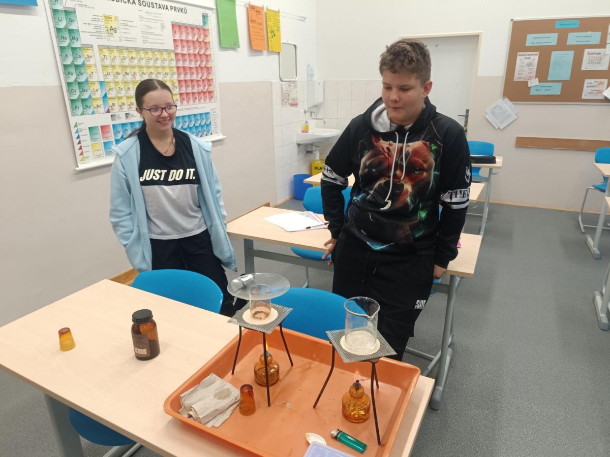 Chemie je pro nás nový předmět, ve kterém se neučíme jen teorii, ale zkoušíme praktické úkoly.