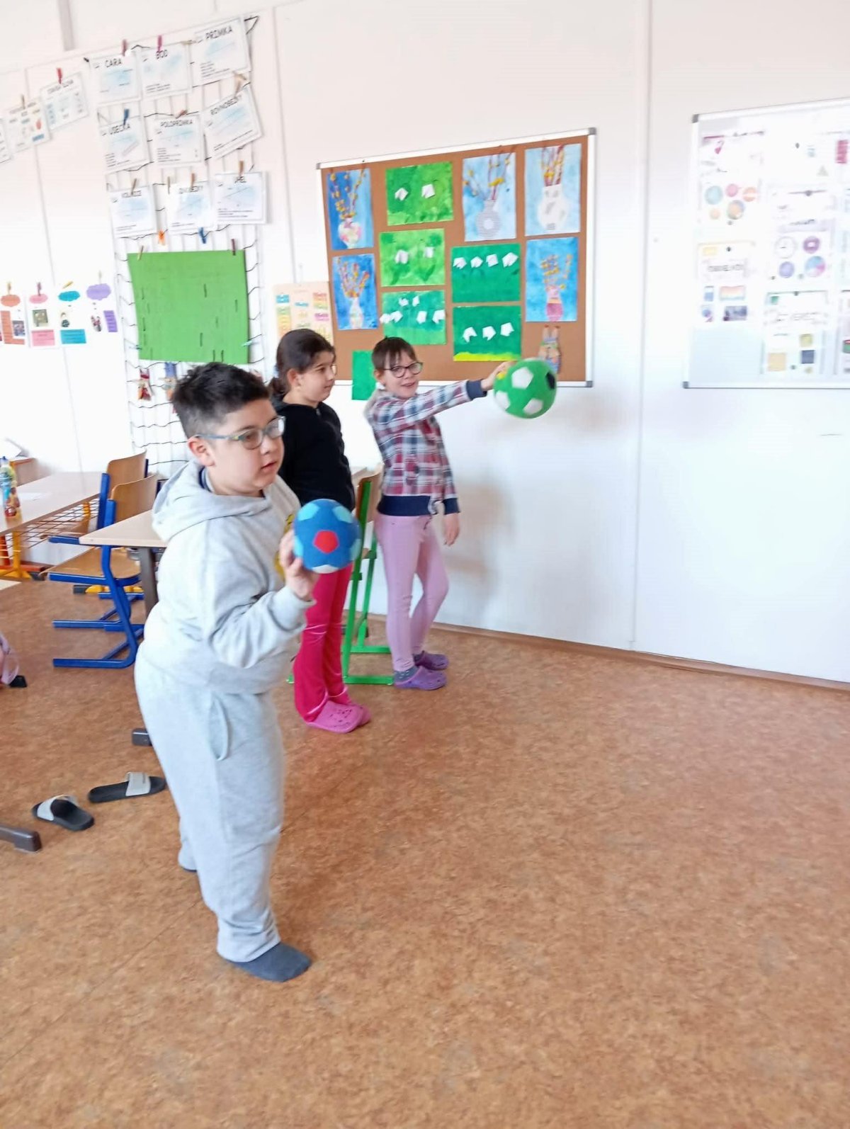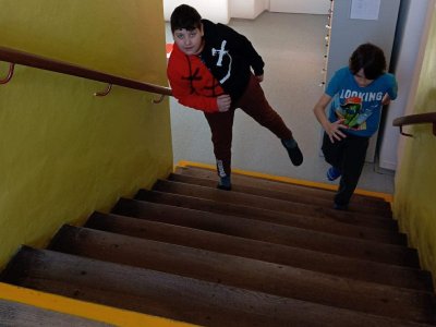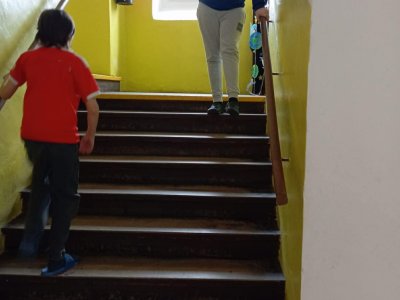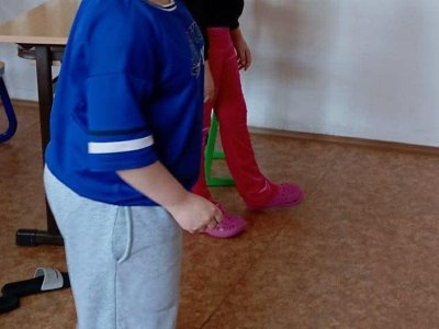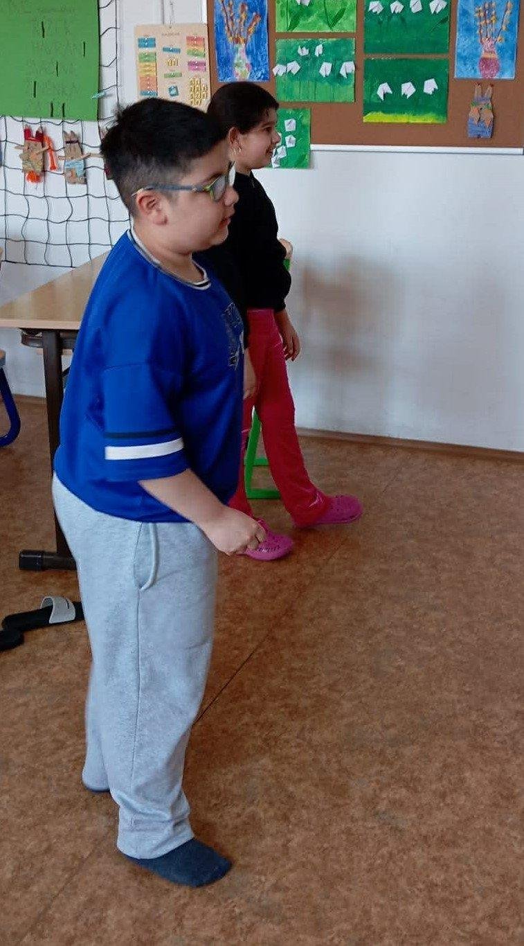 My už jsme začali! První disciplíny jsou hod na koš, chůze po schodech a chůze pozadu.