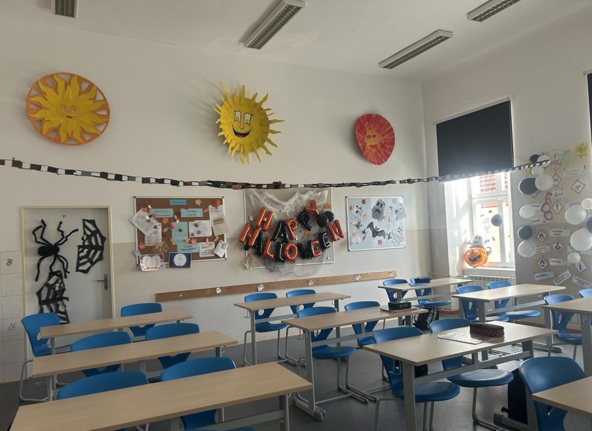 V pátek 31. října 2025 se škola proměnila v místo plné strašidel, čarodějů, duchů a dalších podivuhodných bytostí – slavili jsme totiž Halloween! Už při příchodu do školy bylo jasné, že nás čeká výjimečný den. Třídy byly krásně vyzdobené, pavouci viseli ze stropů a nechyběly ani pavučiny či tajemné dekorace.