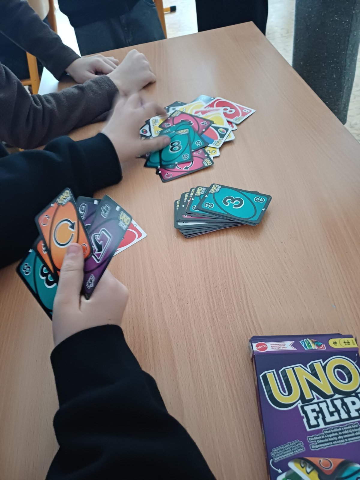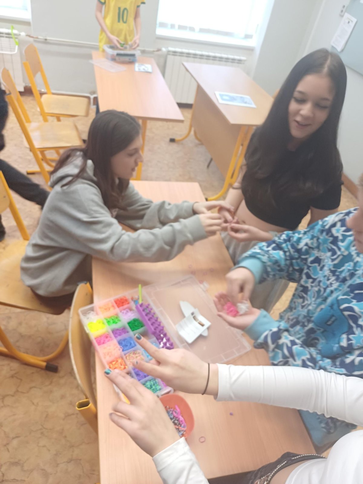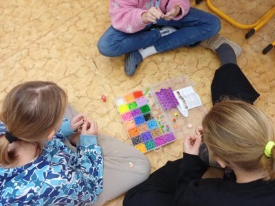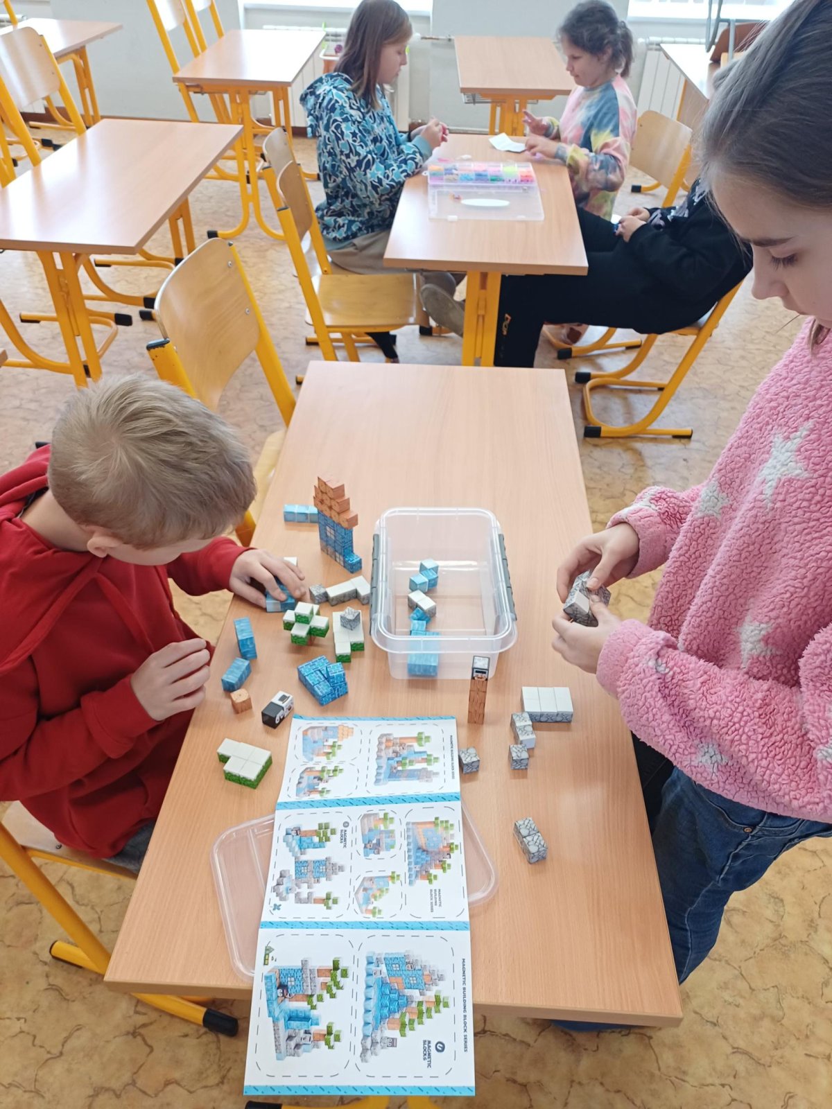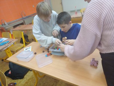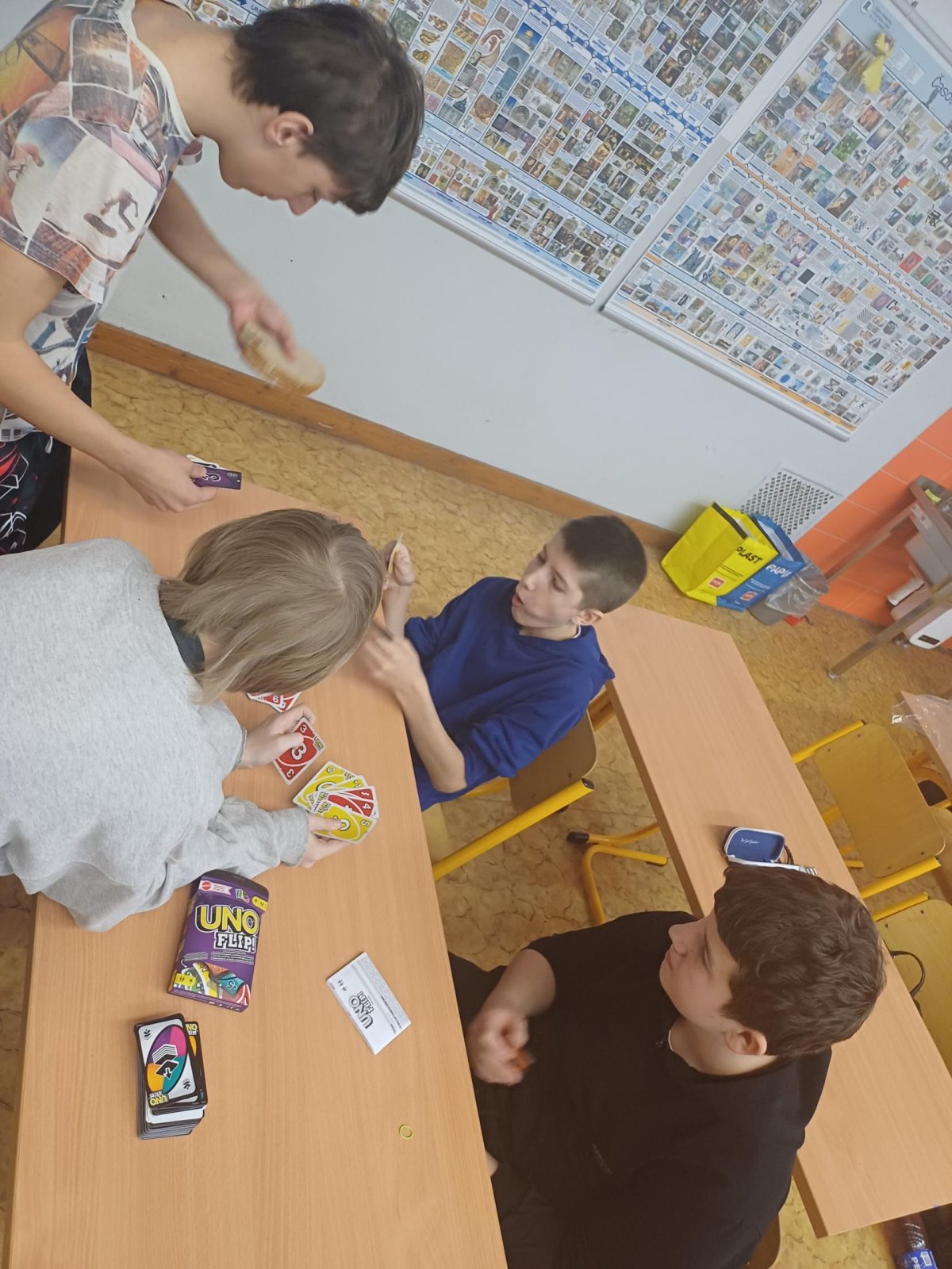 Ježíšek nám letos nadělil spoustu nových přestávkových aktivit a stavebnic. O velké přestávce tak máme z čeho vybírat – od šachů, piškvorek a hry Uno přes různé magnetické stavebnice až po pletení náramků z gumiček.