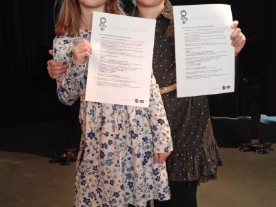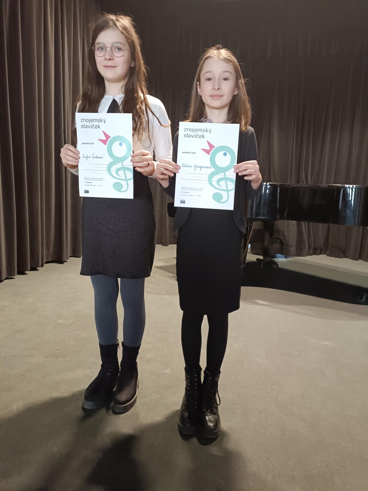 Děkujeme našim zpěváčkům za vzornou reprezentaci školy. Markétě a Lindě blahopřejeme k postupu do finále, které se bude konat 29. 3. 2026 v Městském divadle za doprovodu cimbálové muziky.