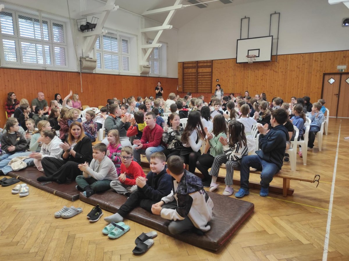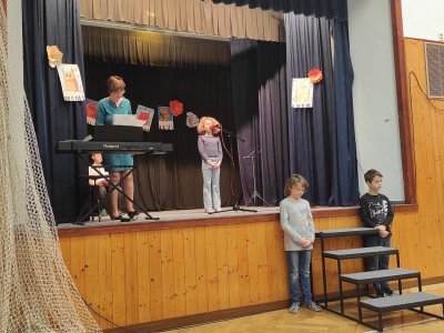 Ve čtvrtek se naše tělocvična proměnila v koncertní sál, kde jsme si poslechli moravské lidové písně v podání našich malých zpěváčků z přípravných a prvních až šestých tříd.