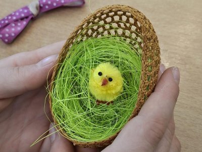 Vajíčka v Alšovce nebyla jediná, která si naši čtvrťáci odnesli domů. V pracovních činnostech si vyrobili ještě jednou závěsnou dekoraci - do háčkovaných vajíček posadili na travnaté hnízdo malé kuřátko a výrpoběk si dozdobili mašličkou. Pojďte si je s námi prohlédnout.