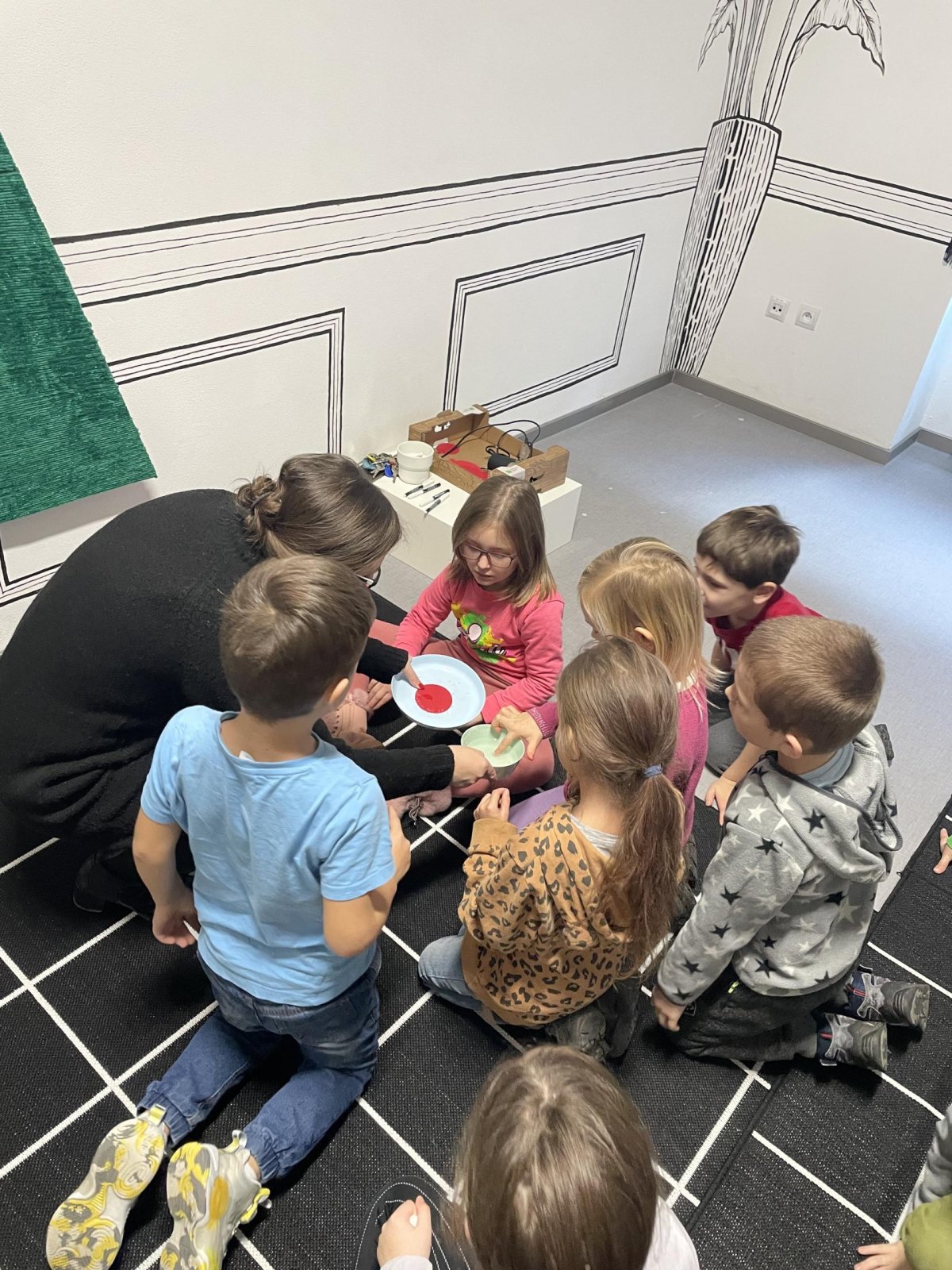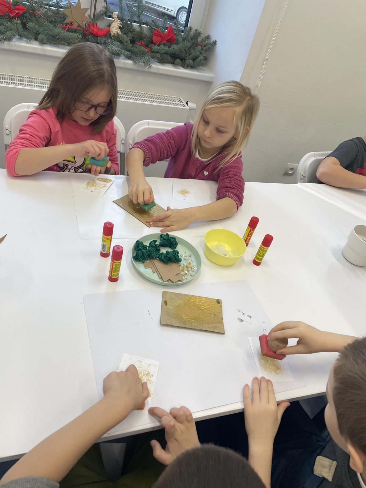 Vyzkoušeli jsme si vytvoření vánoční ozdoby, kterou si s radostí děti odnesly domů. Během programu jsme si povídali i o tom, co k Vánocům patří - nejen světýlka a dárky, ale hlavně laskavost, radost a vzájemná pomoc. Děti si vytvořily společnou třídní ozdobu kouzelným lektvarem, který se zatřpytí jen pokud bylo dítko opravdu laskavé a hodné.