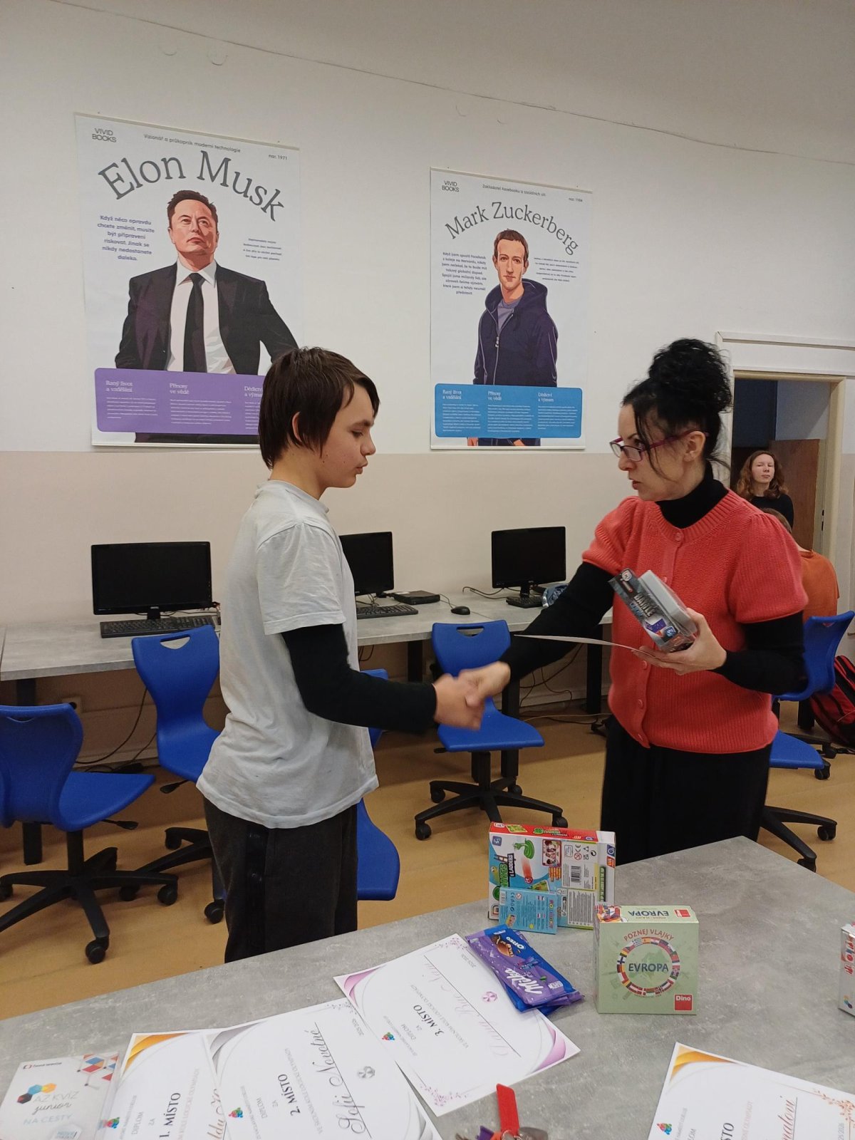 Dnes, 16. 12. 2025, byly během velké přestávky předány ceny žákům, kteří se umístili ve školních kolech logické a dějepisné olympiády. Ocenění si převzali také žáci zapojení do výtvarné soutěže města Znojma.