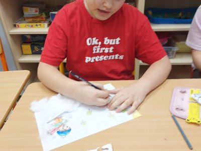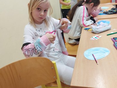 Děti ve školní družině vytvářely postavičku, která bruslí na zamrzlém rybníčku. Při tvoření rozvíjely svou fantazii, zručnost a radost ze zimních aktivit. Hotové práce připomínají kouzlo zimního období.