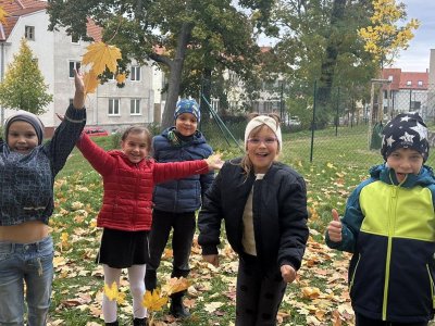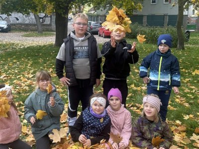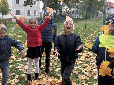 Nádherné listy v odstínech žluté, oranžové, červené a hnědé přímo vybízely k hraní. A my jsme si s nimi pořádně vyhráli a moc nás to bavilo! S ruměnými tvářemi a úsměvy na rtech jsme se vraceli zpět, plní krásných podzimních zážitků.