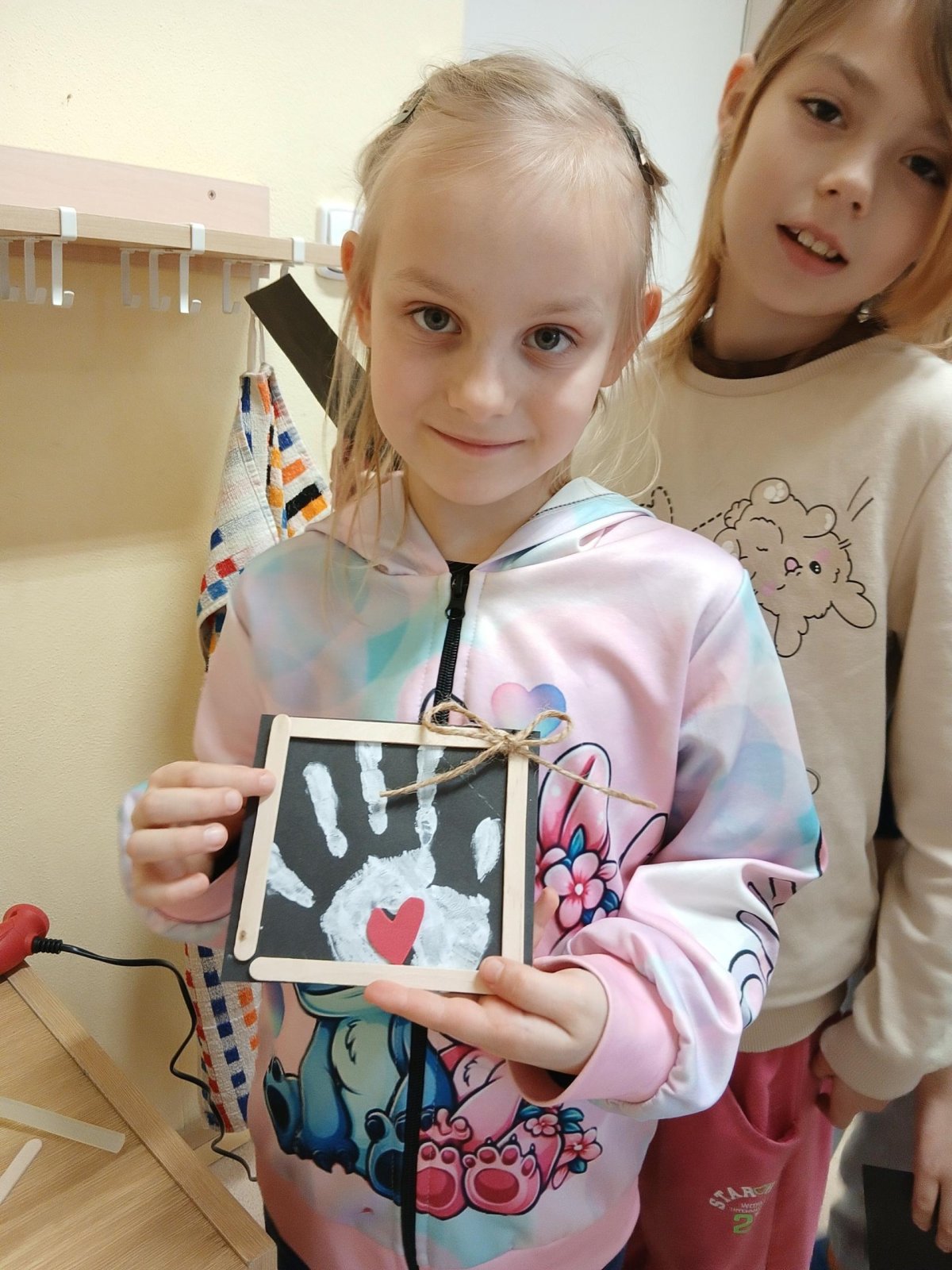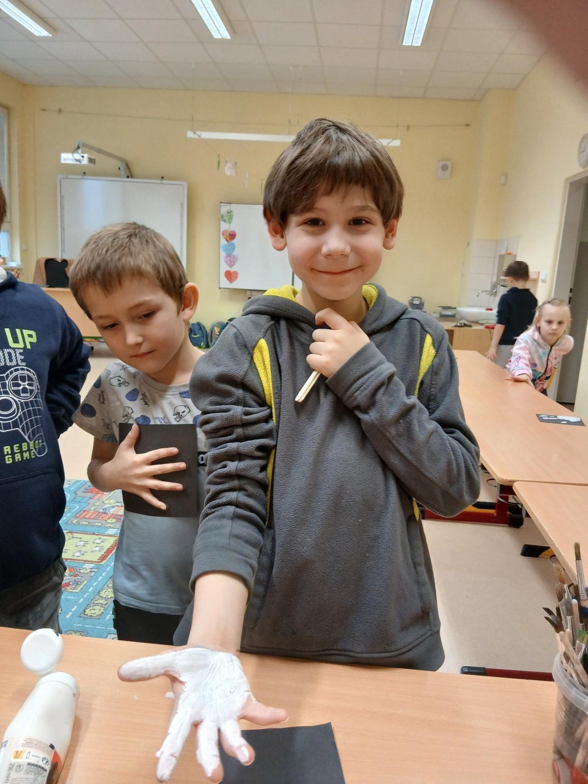 Ve školní družině jsme si užili krásné tvořivé odpoledne. Déti se s nadšením zapojily do výroby obrázků pomocí otisku ruky a srdíček. Každý obrázek je originální a nese v sobě kus dětské radosti, fantazie a šikovnosti.