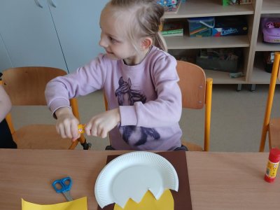 Děti ve školní družině se s nadšením pustily do velikonočního tvoření. Tentokrát vyráběly roztomilá kuřátka z papírových talířků, která se klubou ze skořápky. Pomocí barevného papíru, lepidla a vlastní fantazie vznikla veselá a originální díla, která nám připomínají přicházející jaro a velikonoční čas.