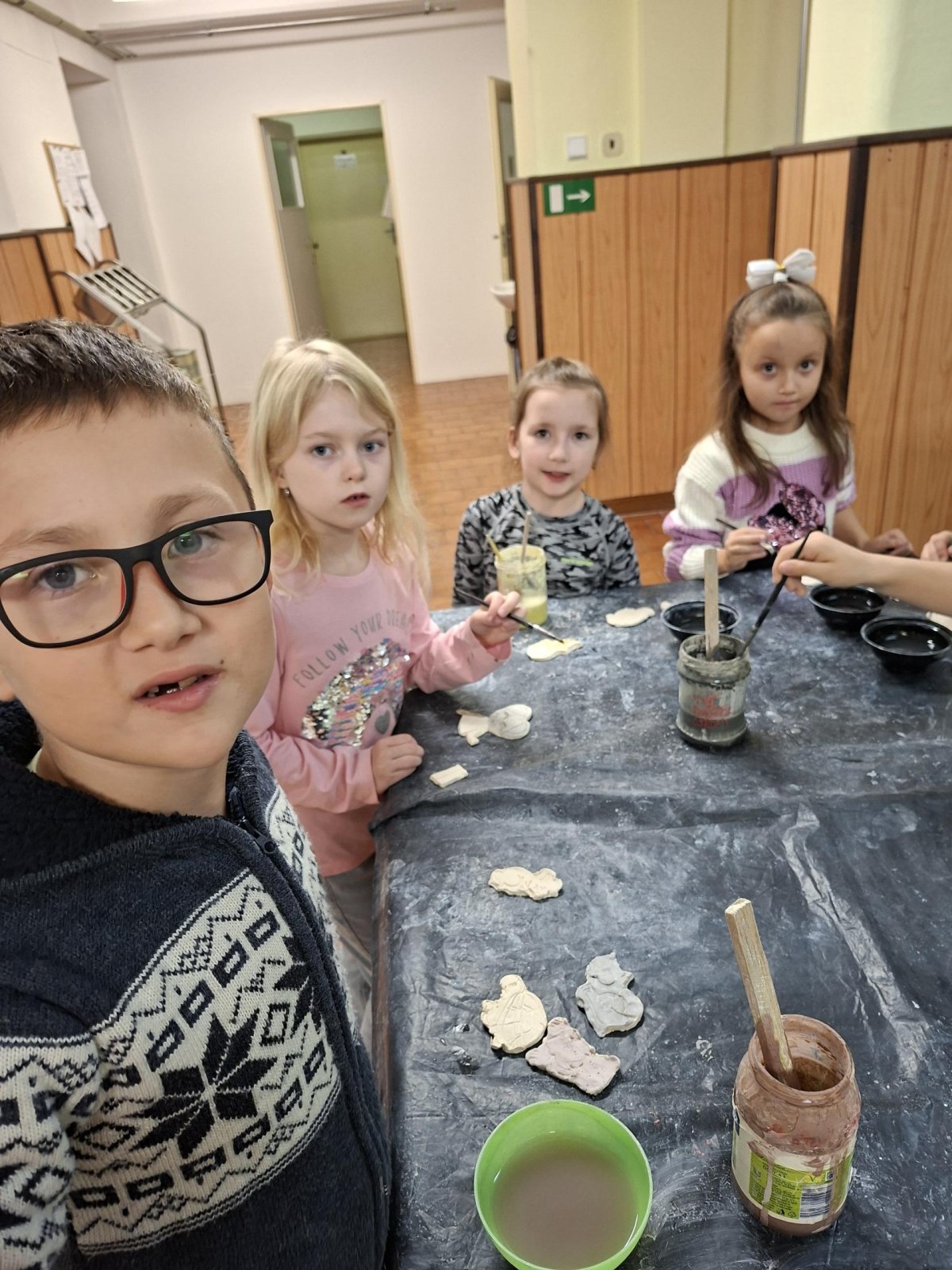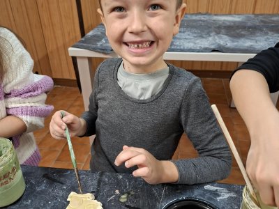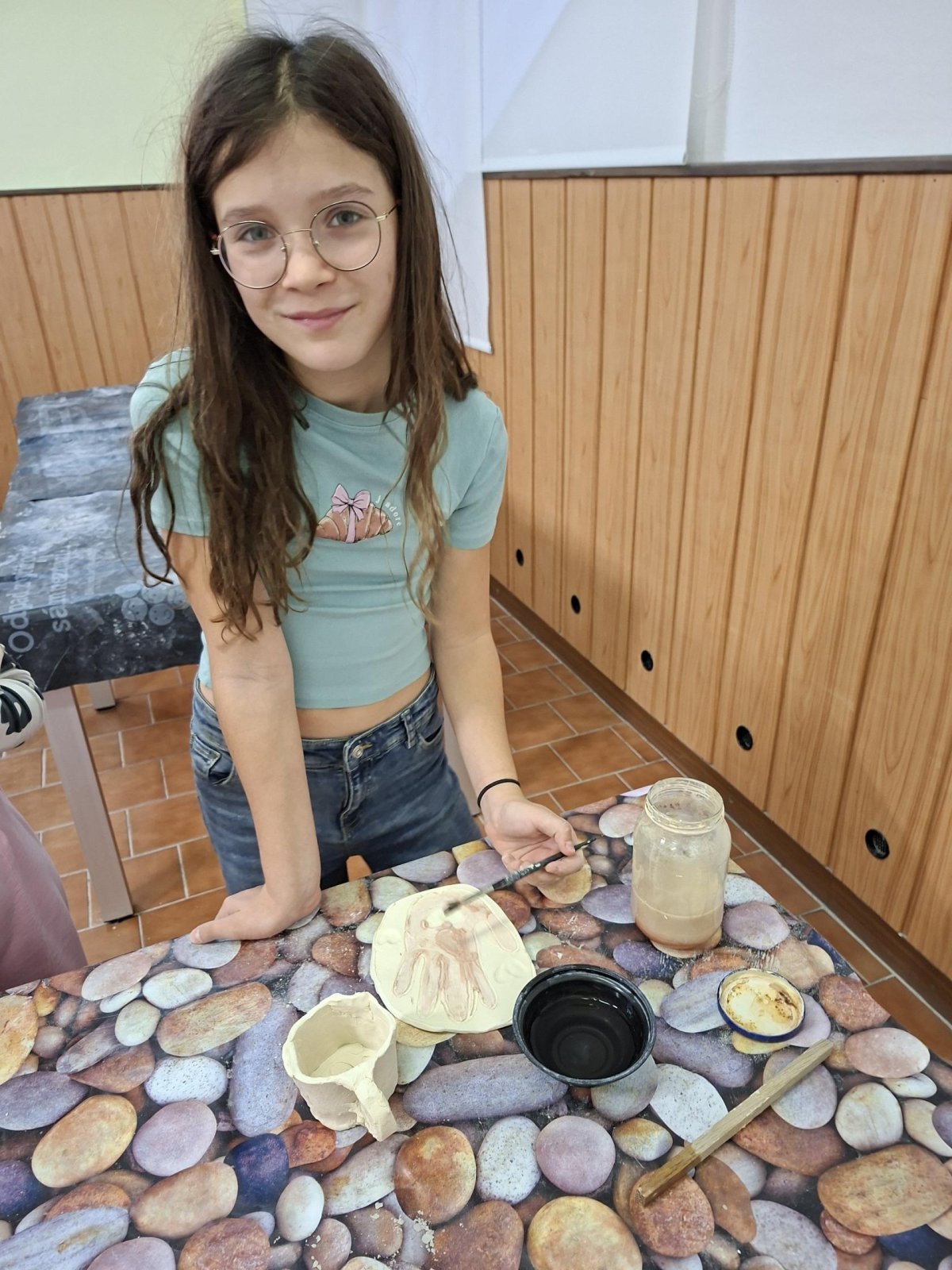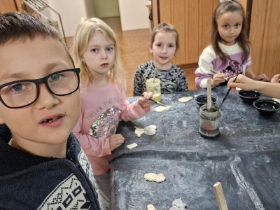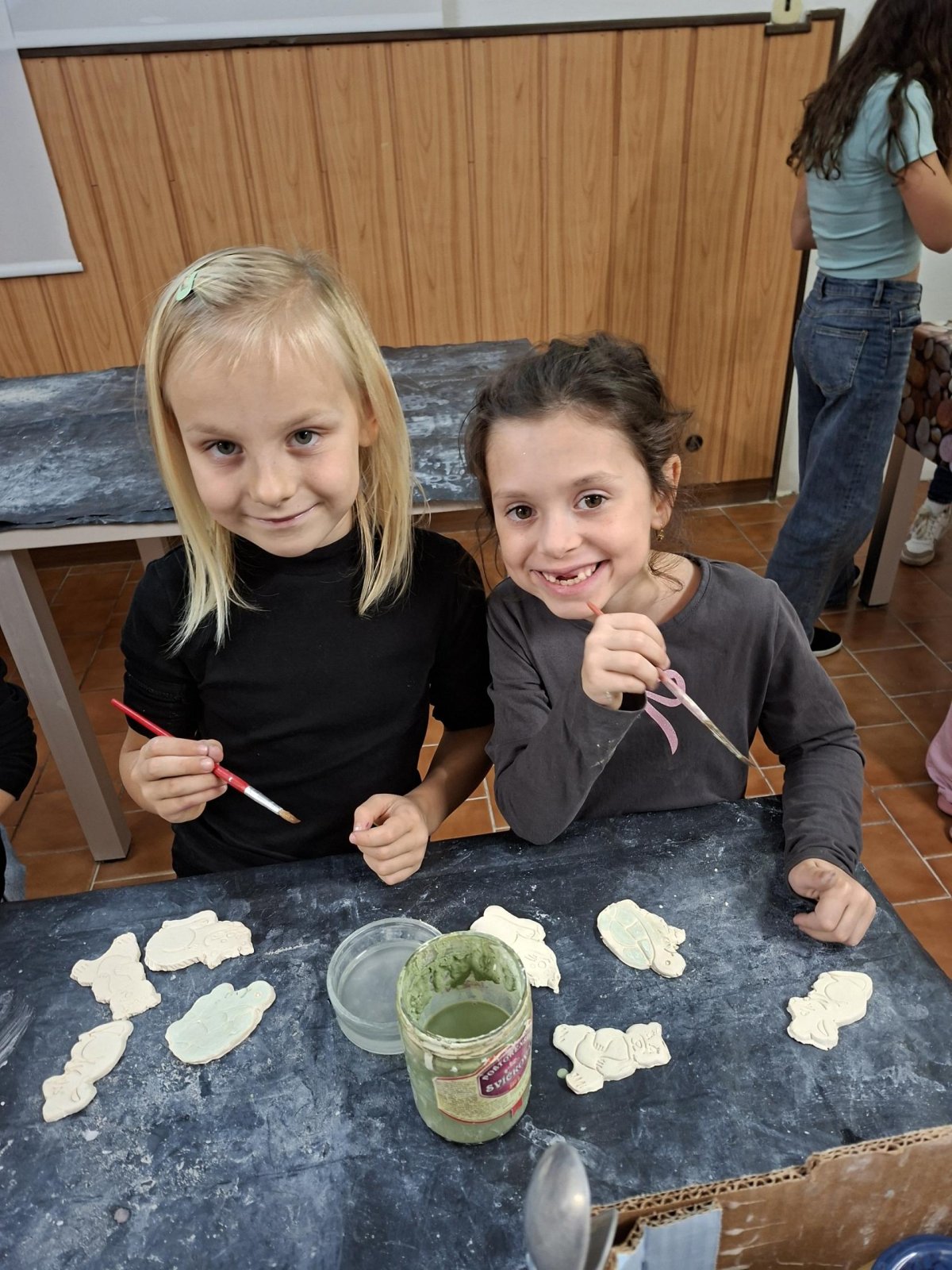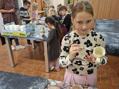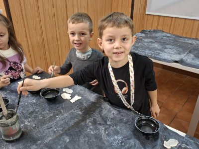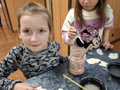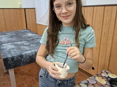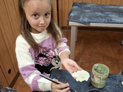 Poprvé jsme zkoušeli glazury. Upatlaní jsme byli až za ušima. Už se těšíme, až naše výrobky znovu přežahne pec, na tu krásu, co jsme vytvořili!