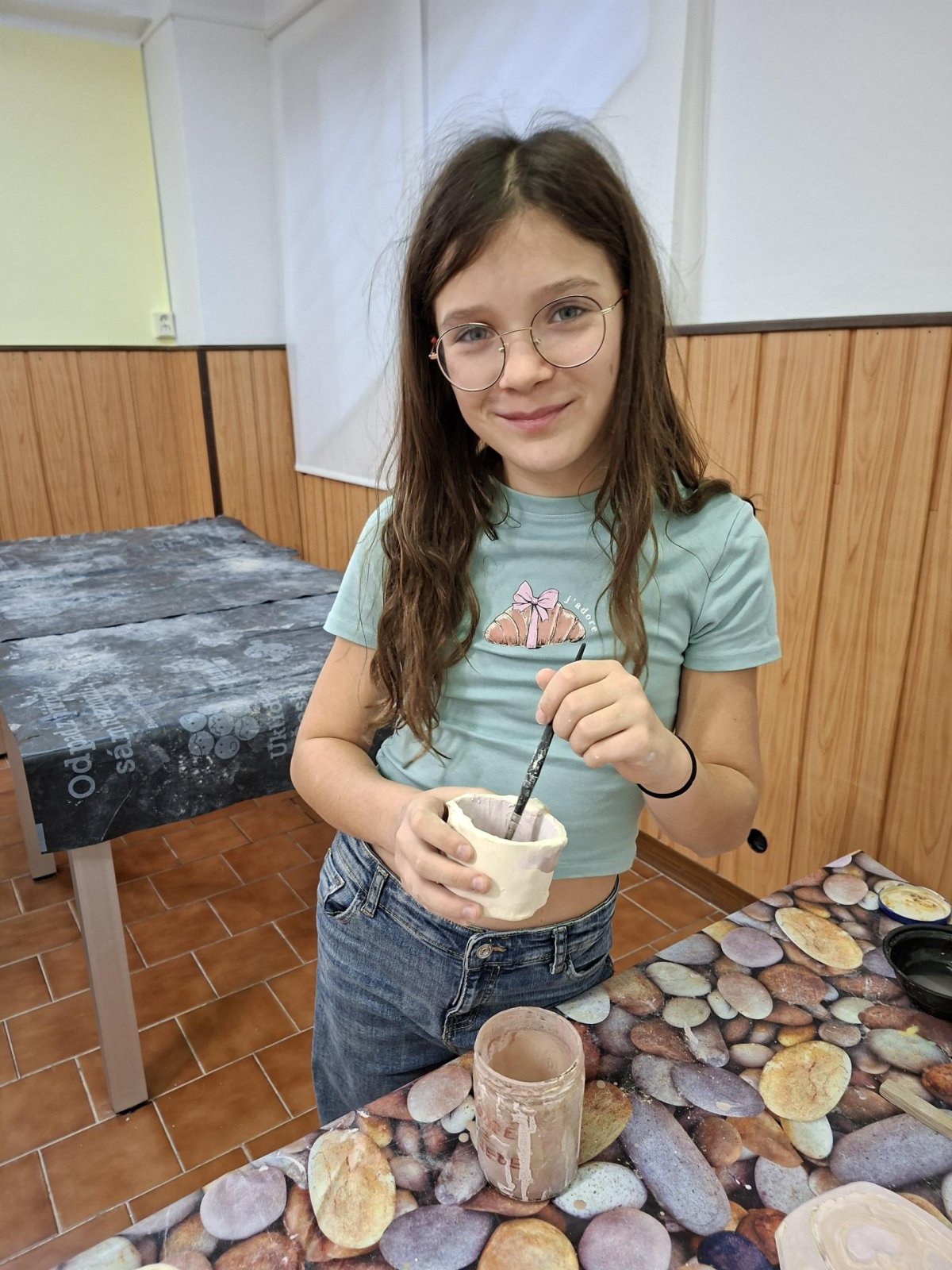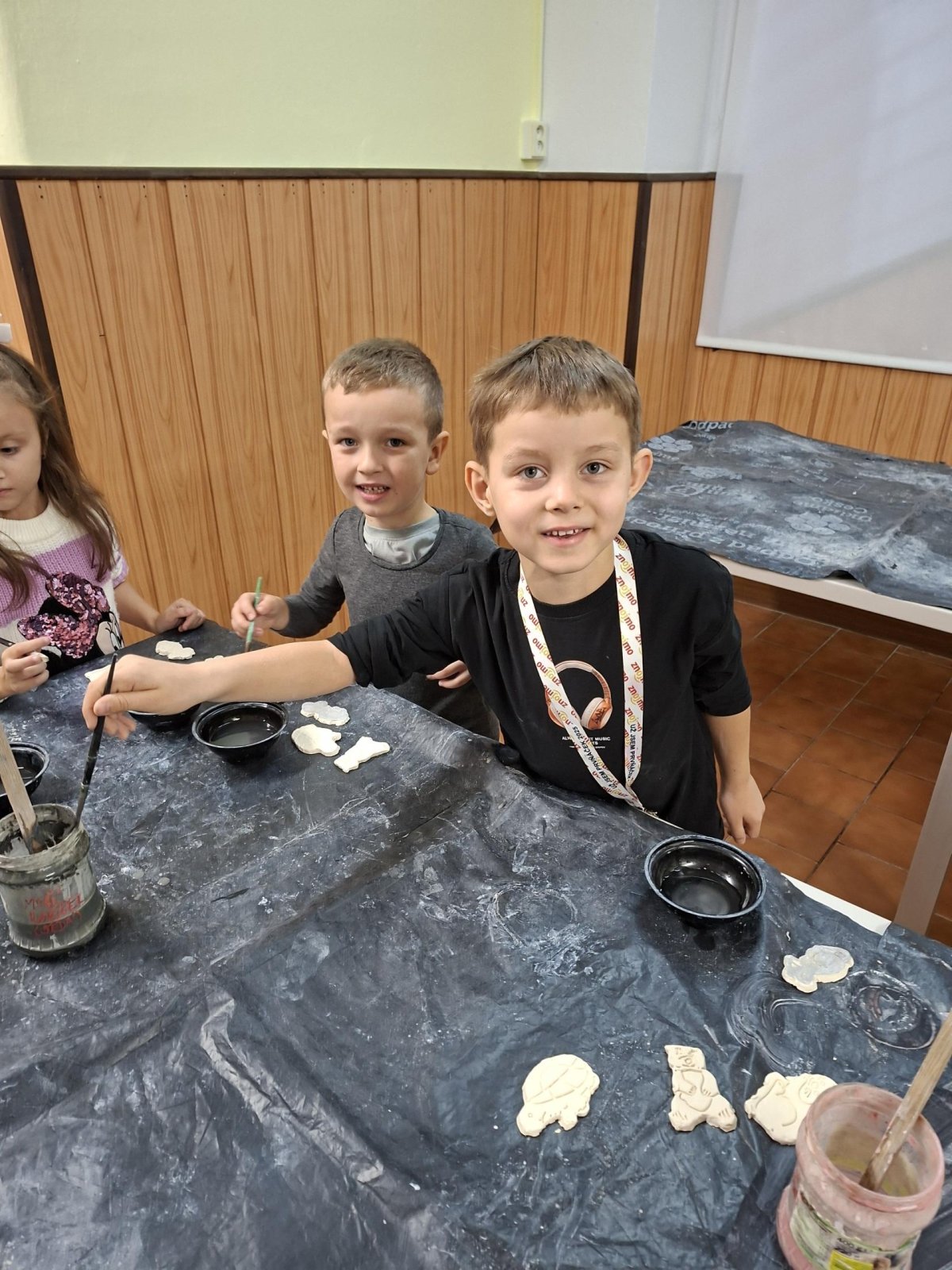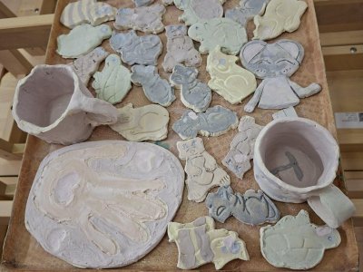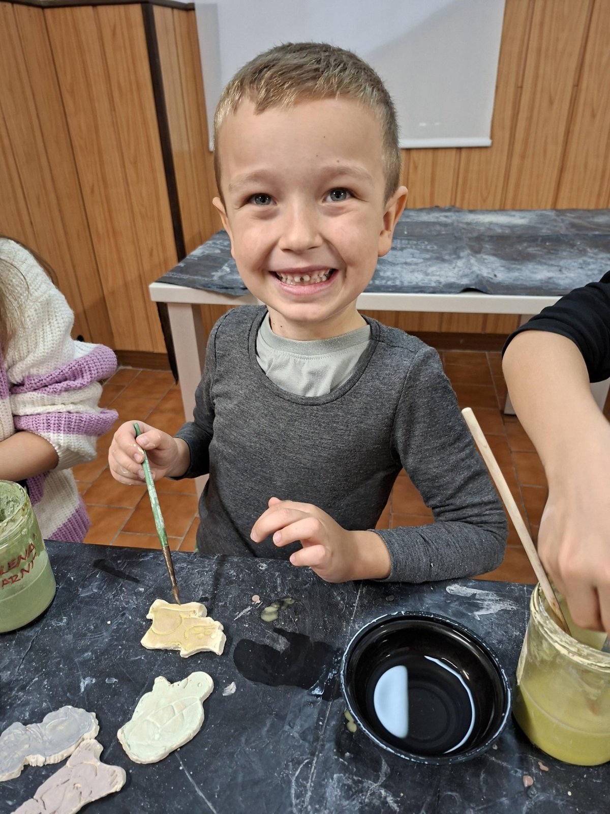 Poprvé jsme zkoušeli glazury. Upatlaní jsme byli až za ušima. Už se těšíme, až naše výrobky znovu přežahne pec, na tu krásu, co jsme vytvořili!
