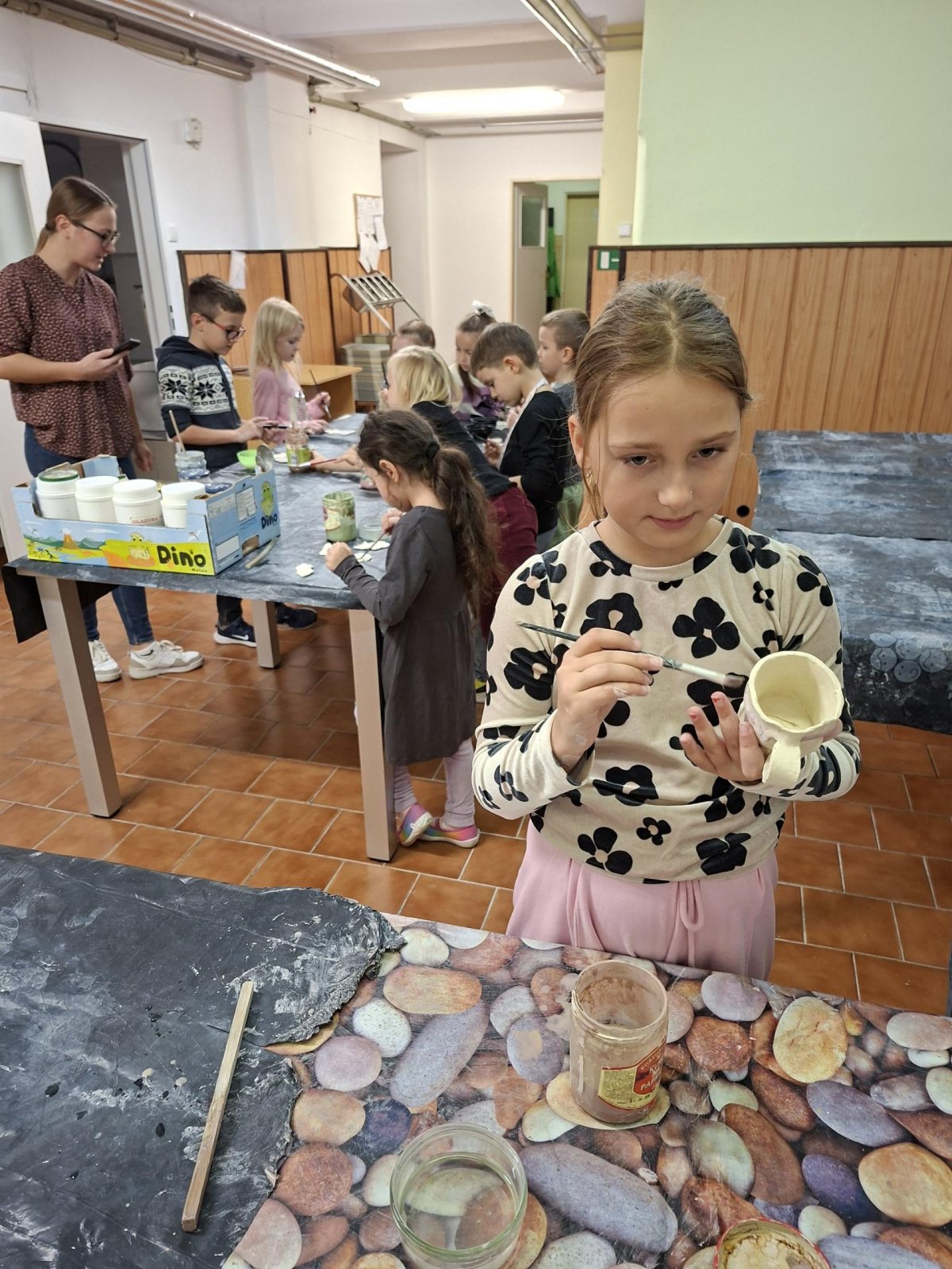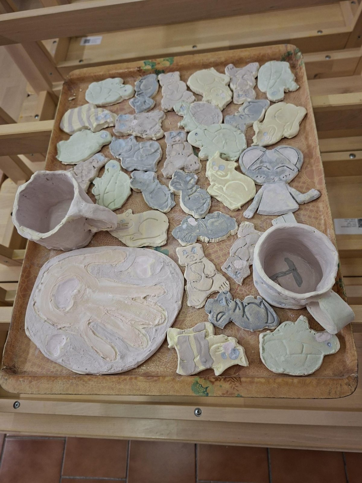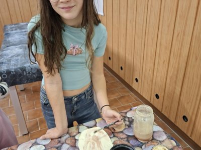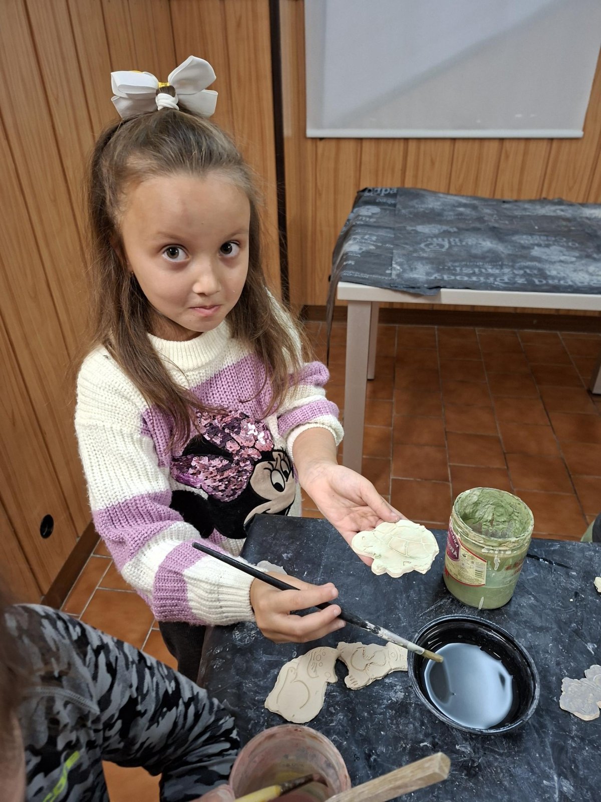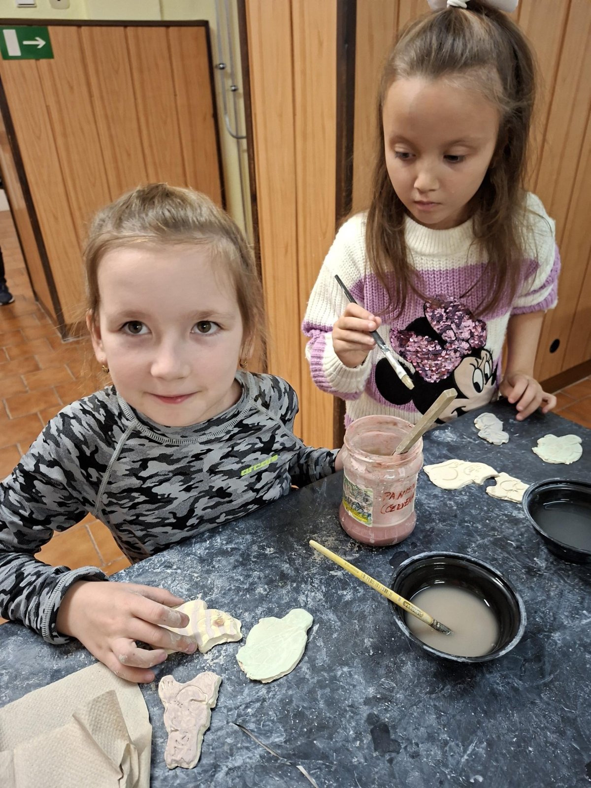 Poprvé jsme zkoušeli glazury. Upatlaní jsme byli až za ušima. Už se těšíme, až naše výrobky znovu přežahne pec, na tu krásu, co jsme vytvořili!