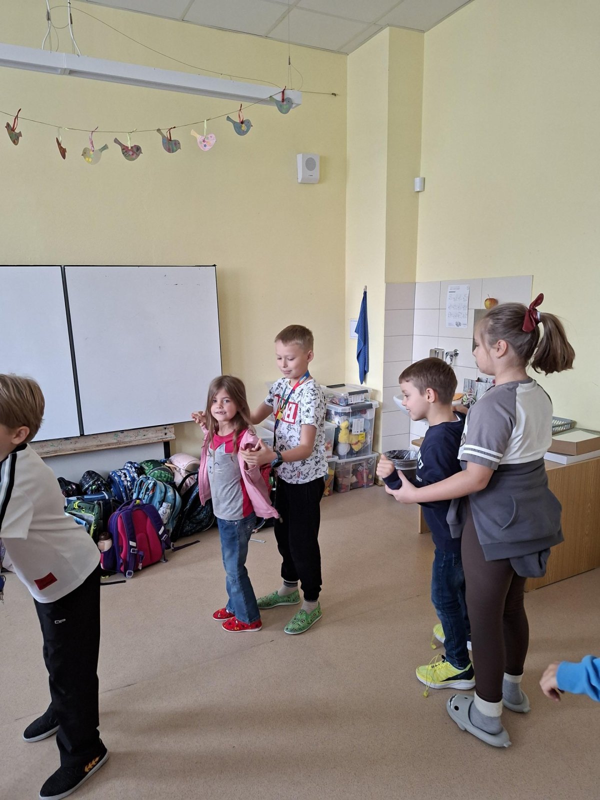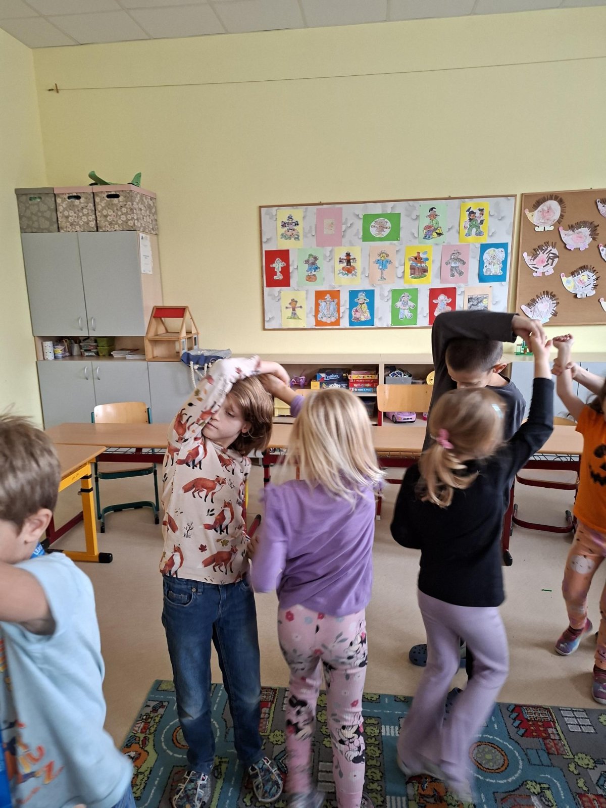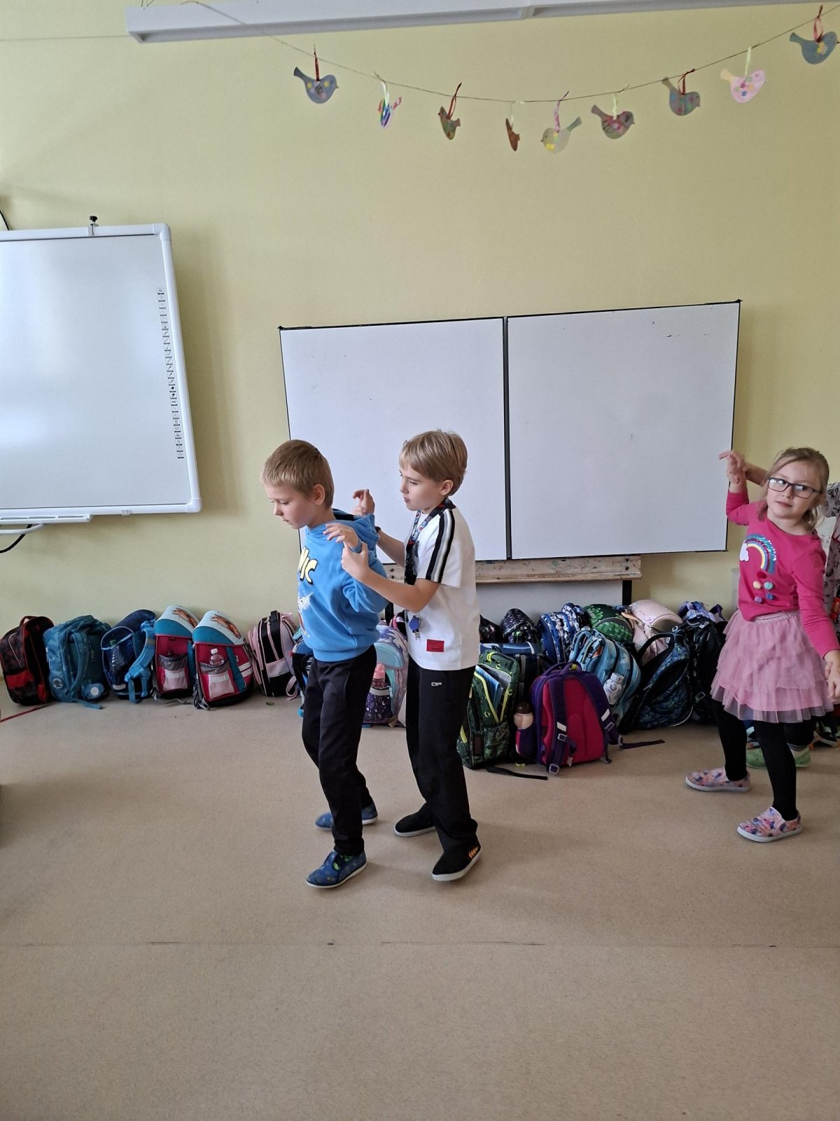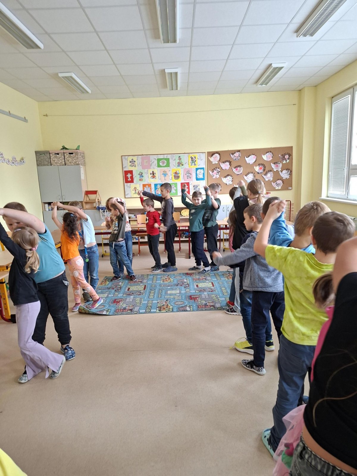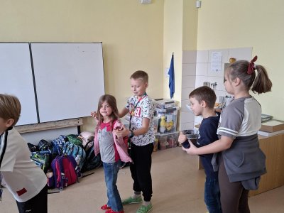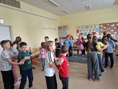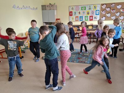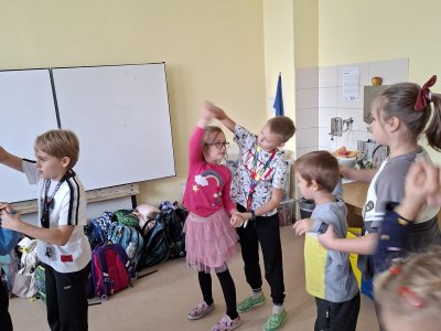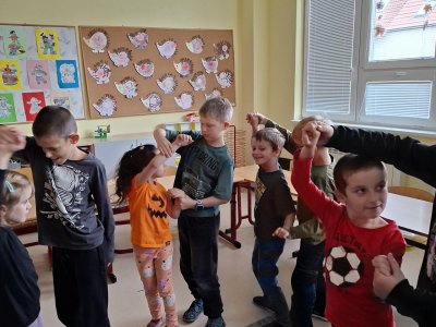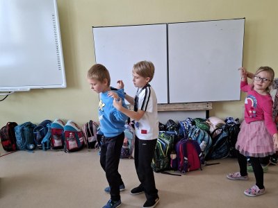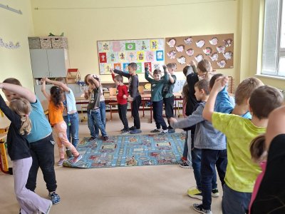 Už tři týdny svědomitě trénujeme na naše vystoupení pro babičky a dědečky. Vybrali jsme si zdánlivě jednoduchý taneček, ale sladit kroky a hudbu je pro nás prozatím těžké. Tak nám držte palce, abychom to dobře zvládli a předvedli se v tom nejlepším "tanečním" světle!
