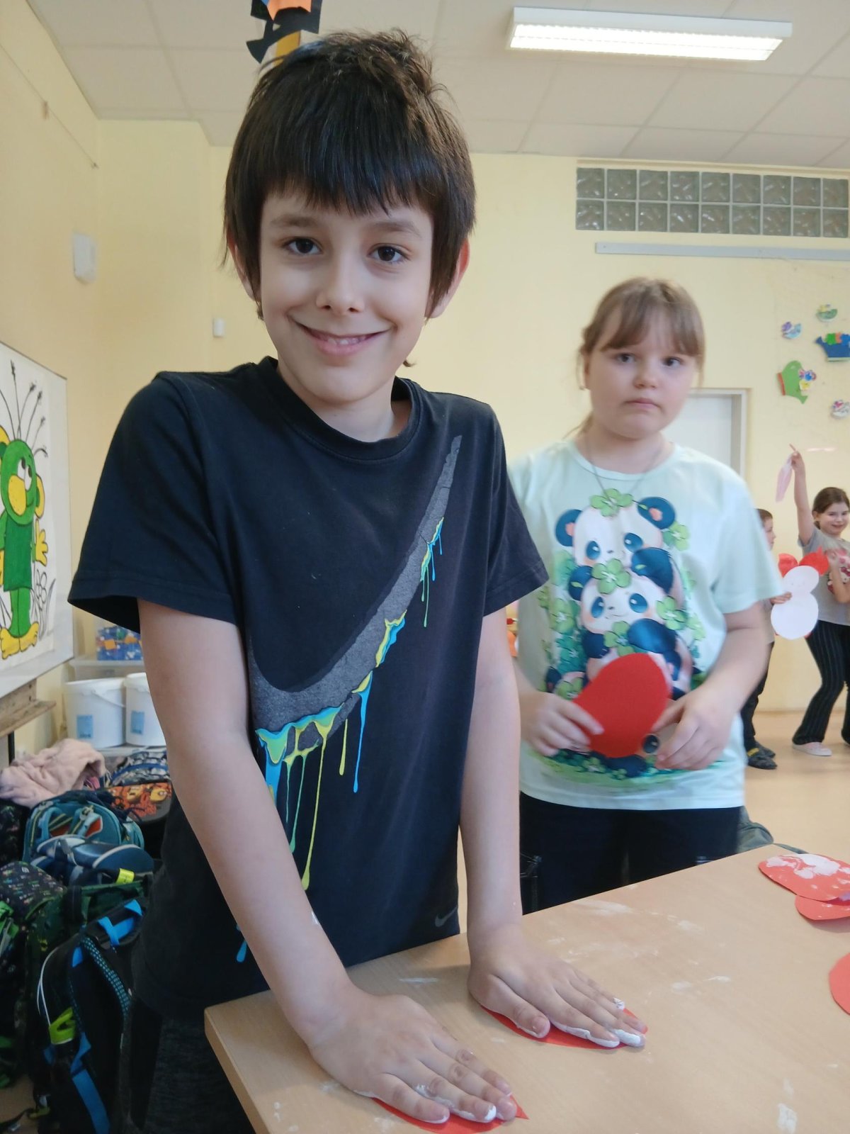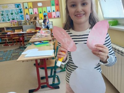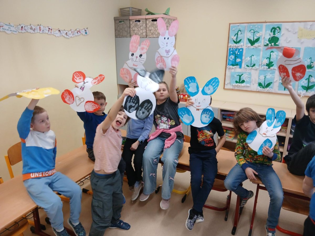 Ve školní družině jsme se pustili do velikonočního tvoření. Děti vyráběly veselé zajíčky, jejichž ouška a tlapky vznikly pomocí otisků dětských ručiček. Každý zajíček byl originální a nesl v sobě kousek jarní nálady i dětské fantazie.