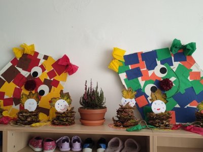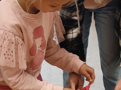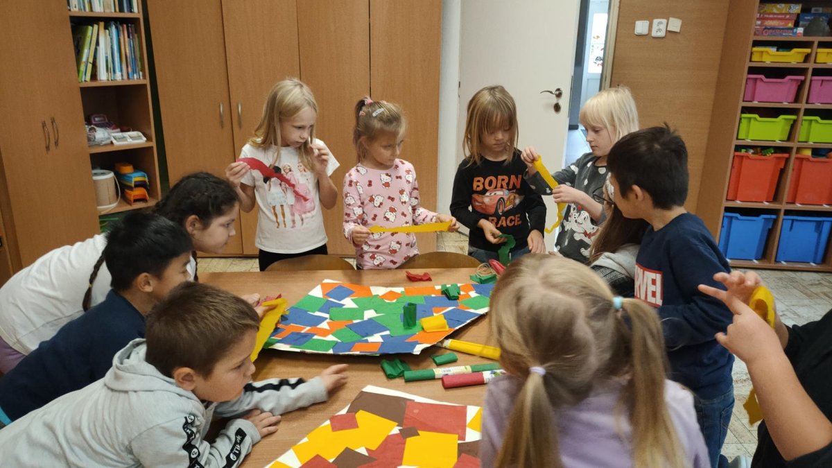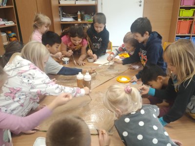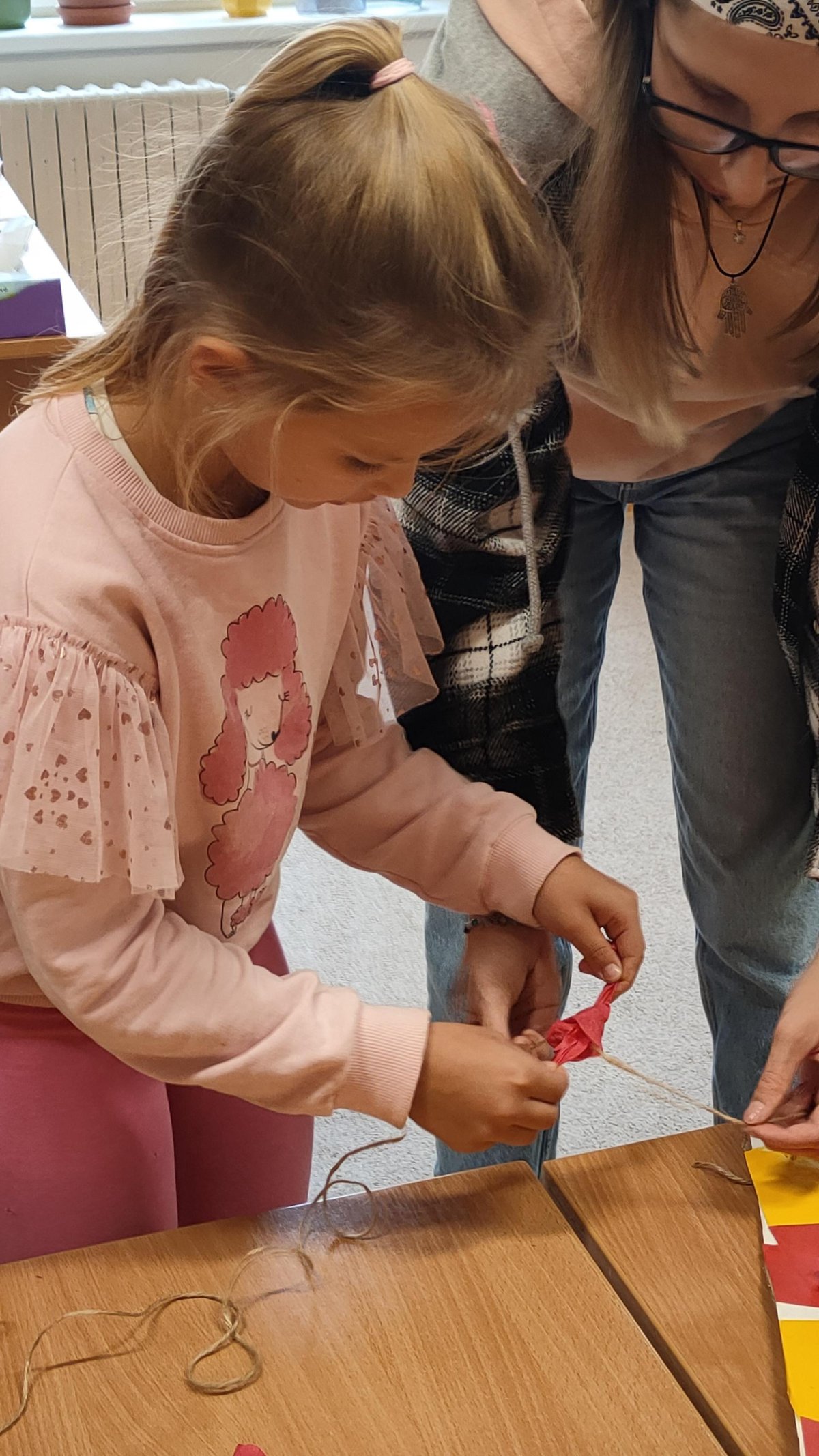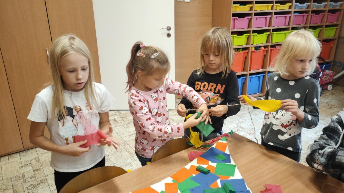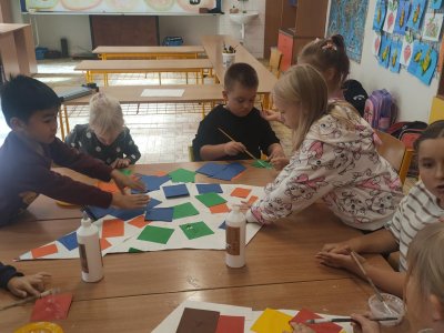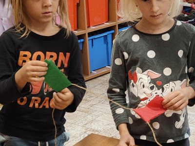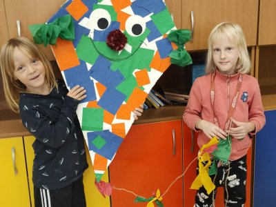 Začali jsme tím, že jsme draky vyřezali z pevného kartonu a polepili světlým papírem. Potom přišlo to nejdůležitější - sladit správně barvy papíru, který bude draky zdobit. Mašle na dračích ocasech nás sice trošku potrápily, ale my jsme si alespoň procvičili vázání uzlíků a mašliček. Teď už se nám budou lépe dařit i ty mašličky na botech.