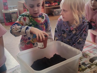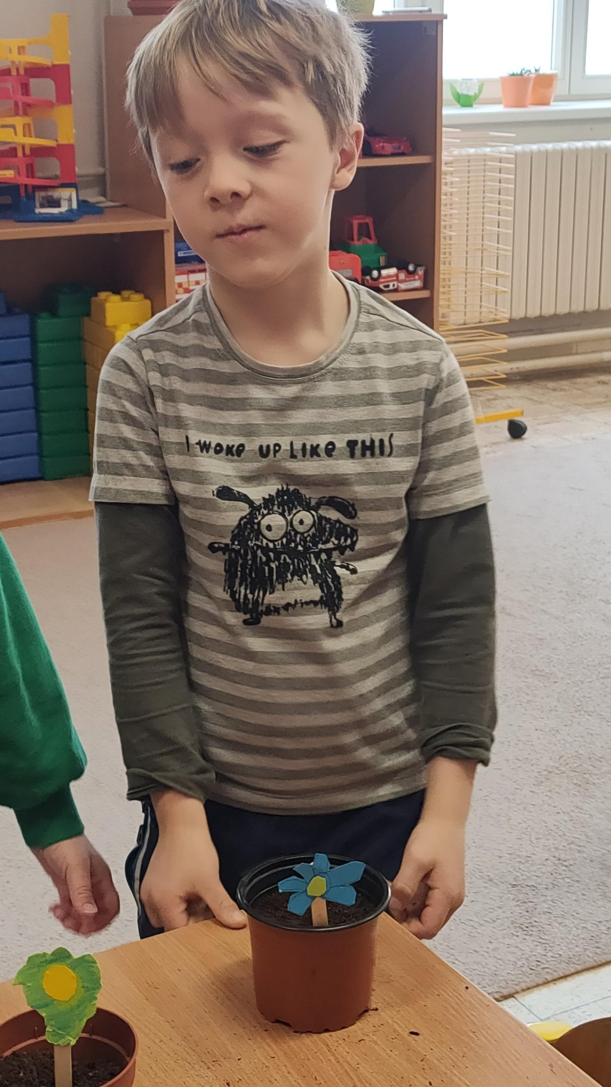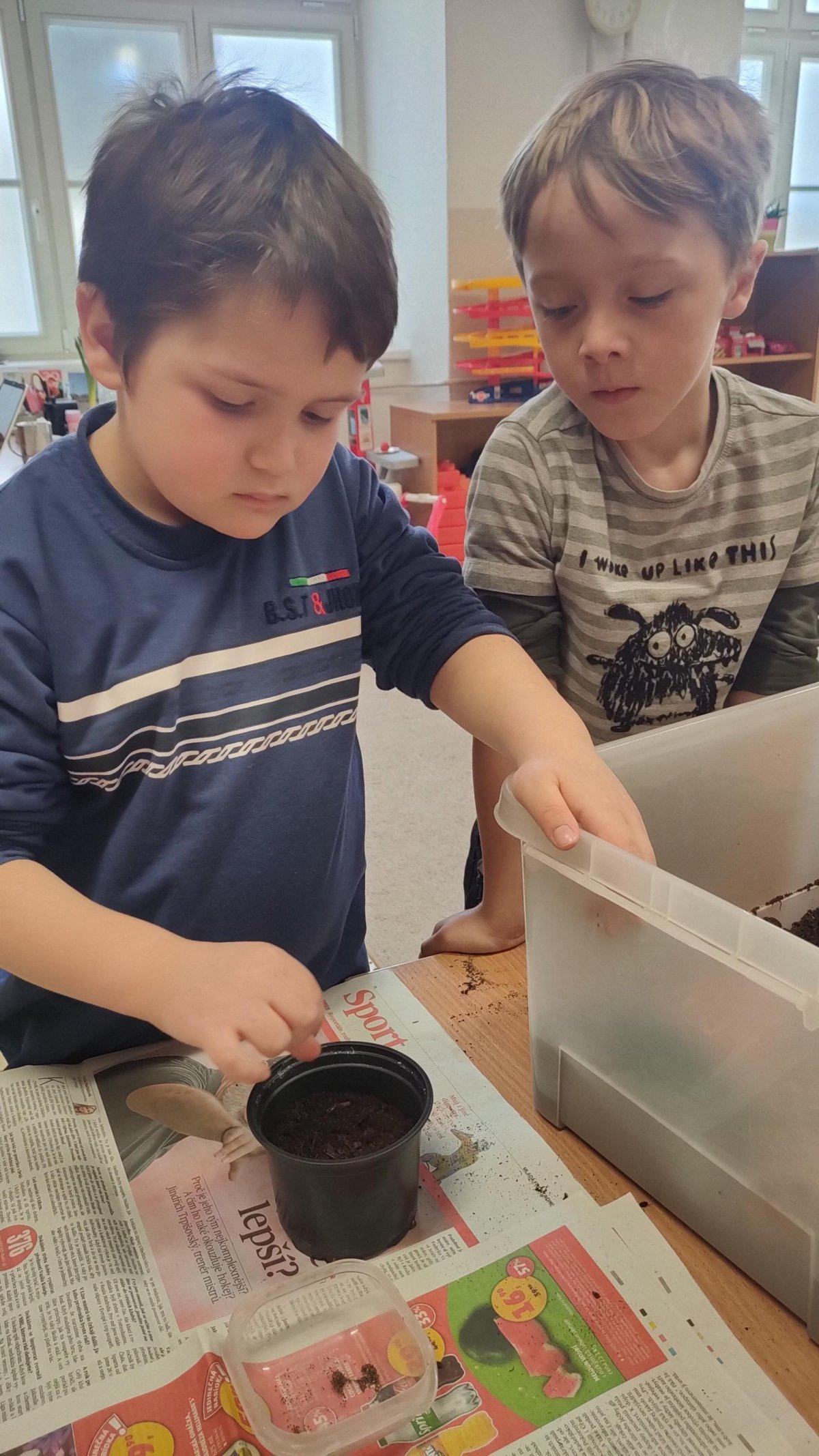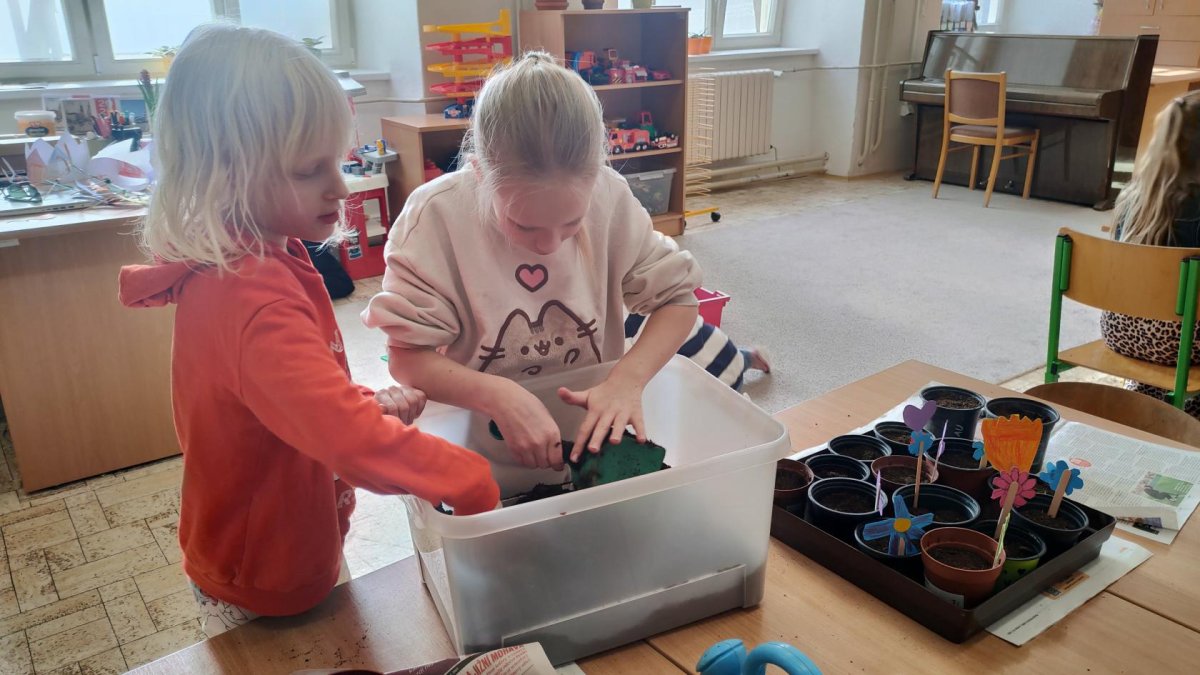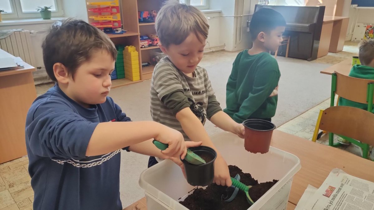 Každý den se teď o květináčky staráme a semínka zaléváme, aby nám pěkně rostla.