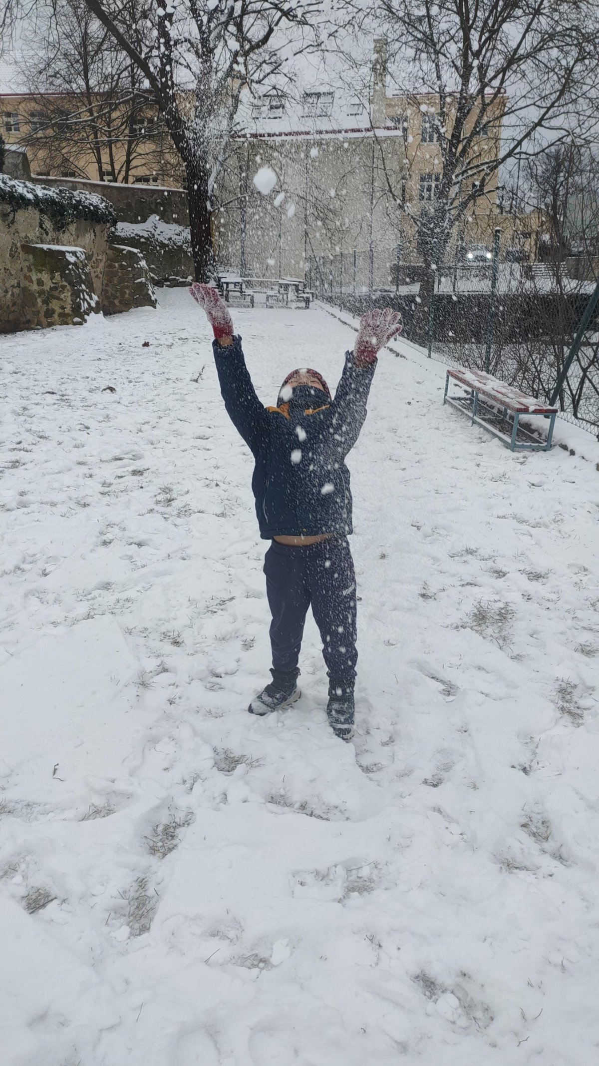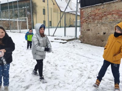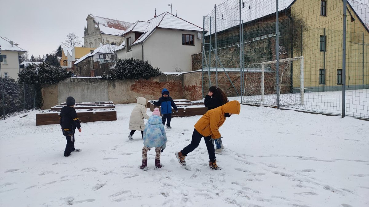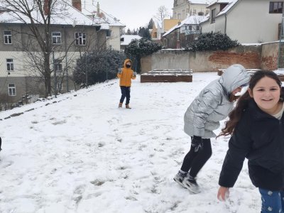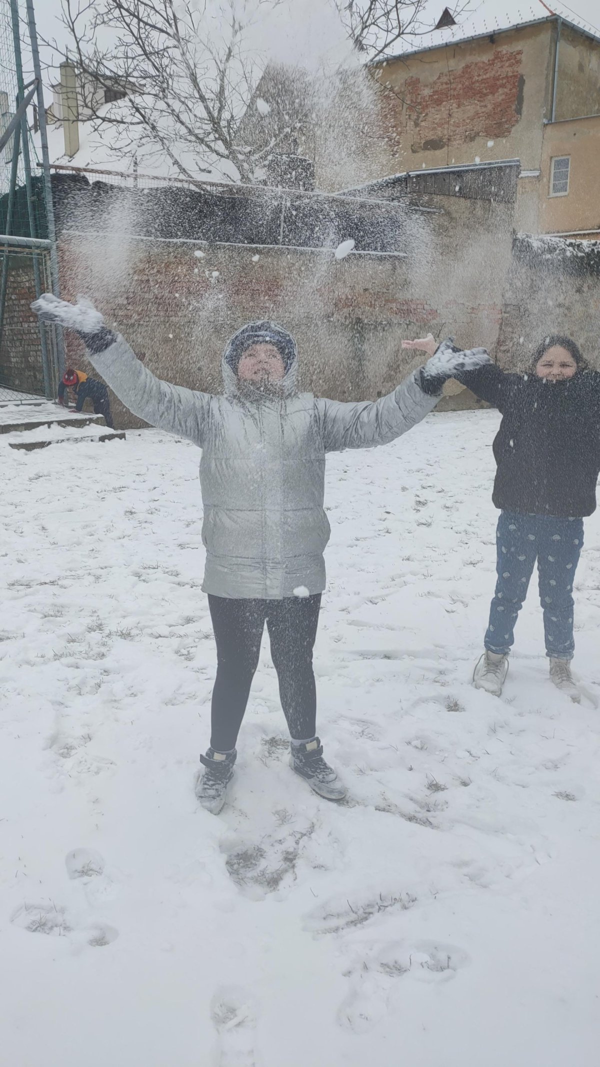 Řádili jsme ve sněhu, dělali andílky, koulovali se, počítali vločky. Užili jsme si to náramně. A pak honem do družiny - zahřát se a usušit.