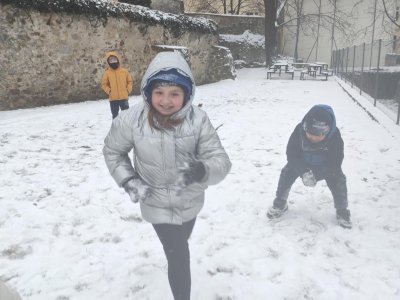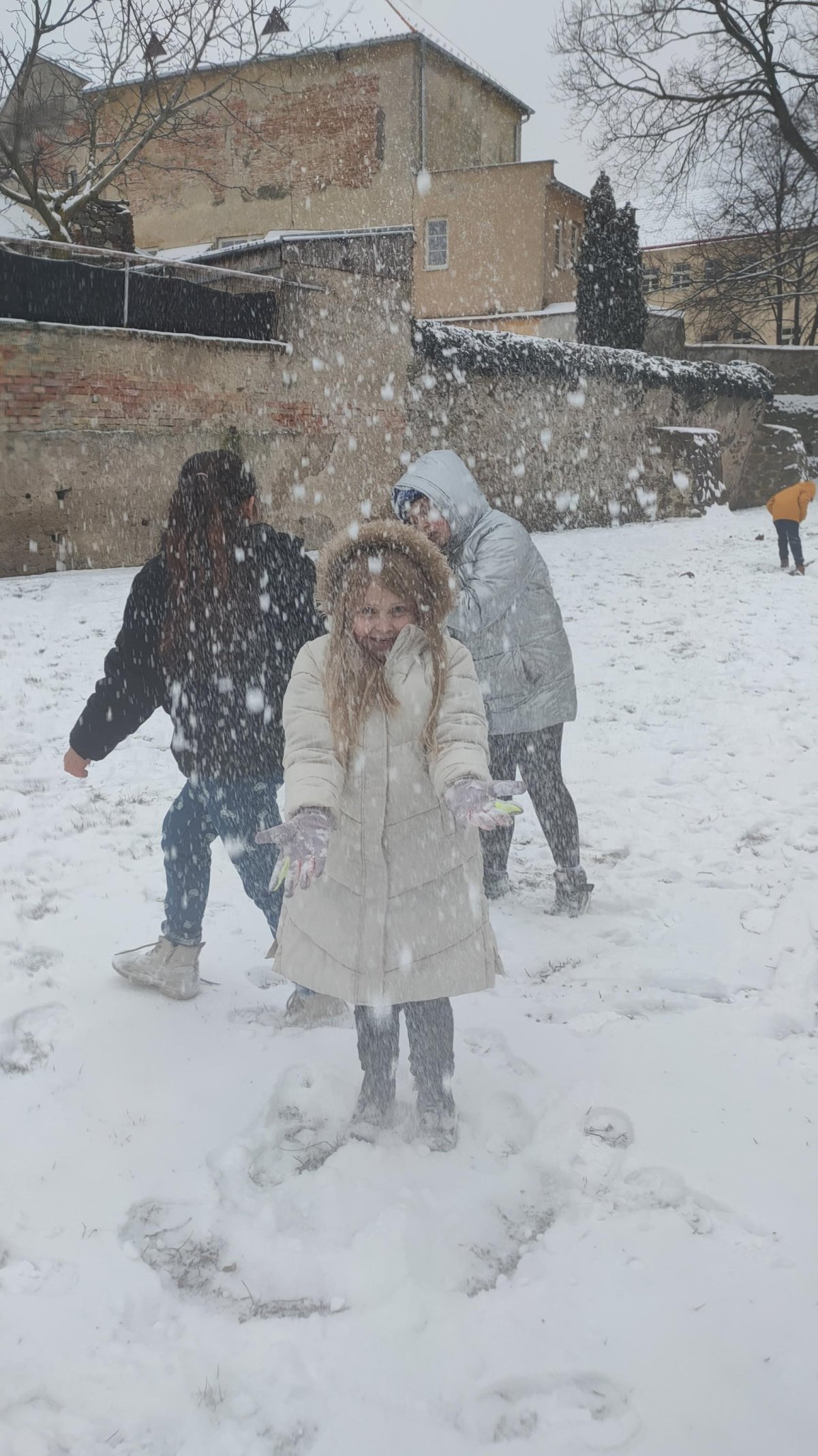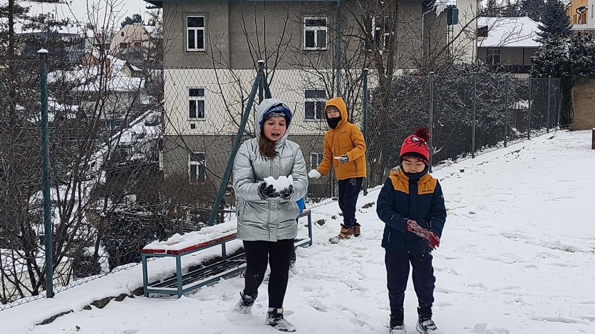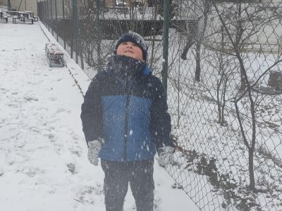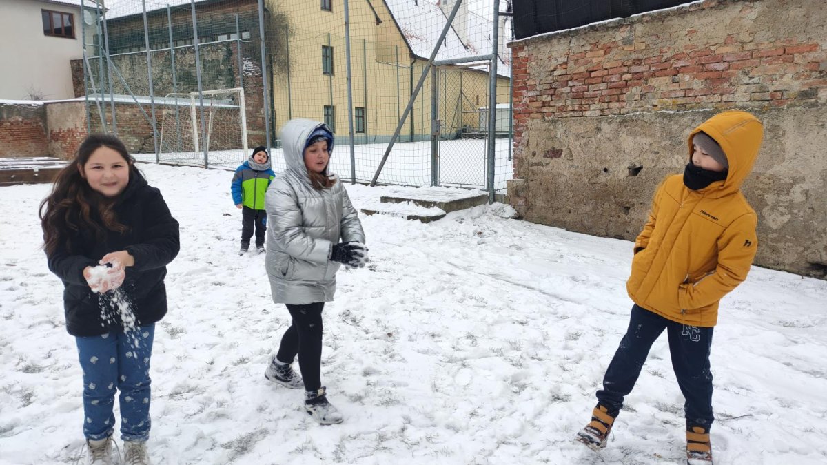 Řádili jsme ve sněhu, dělali andílky, koulovali se, počítali vločky. Užili jsme si to náramně. A pak honem do družiny - zahřát se a usušit.