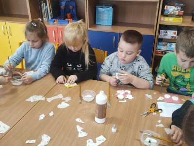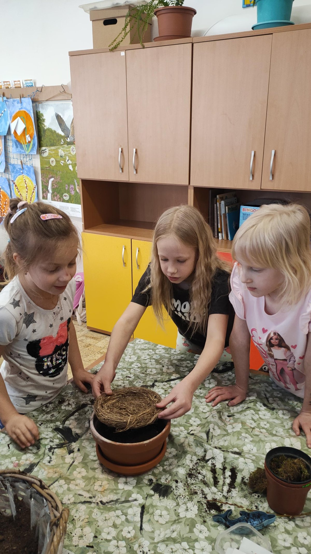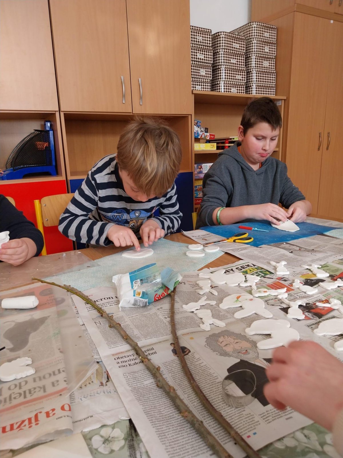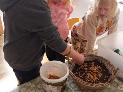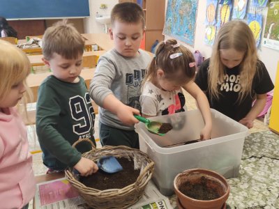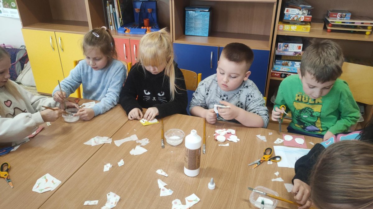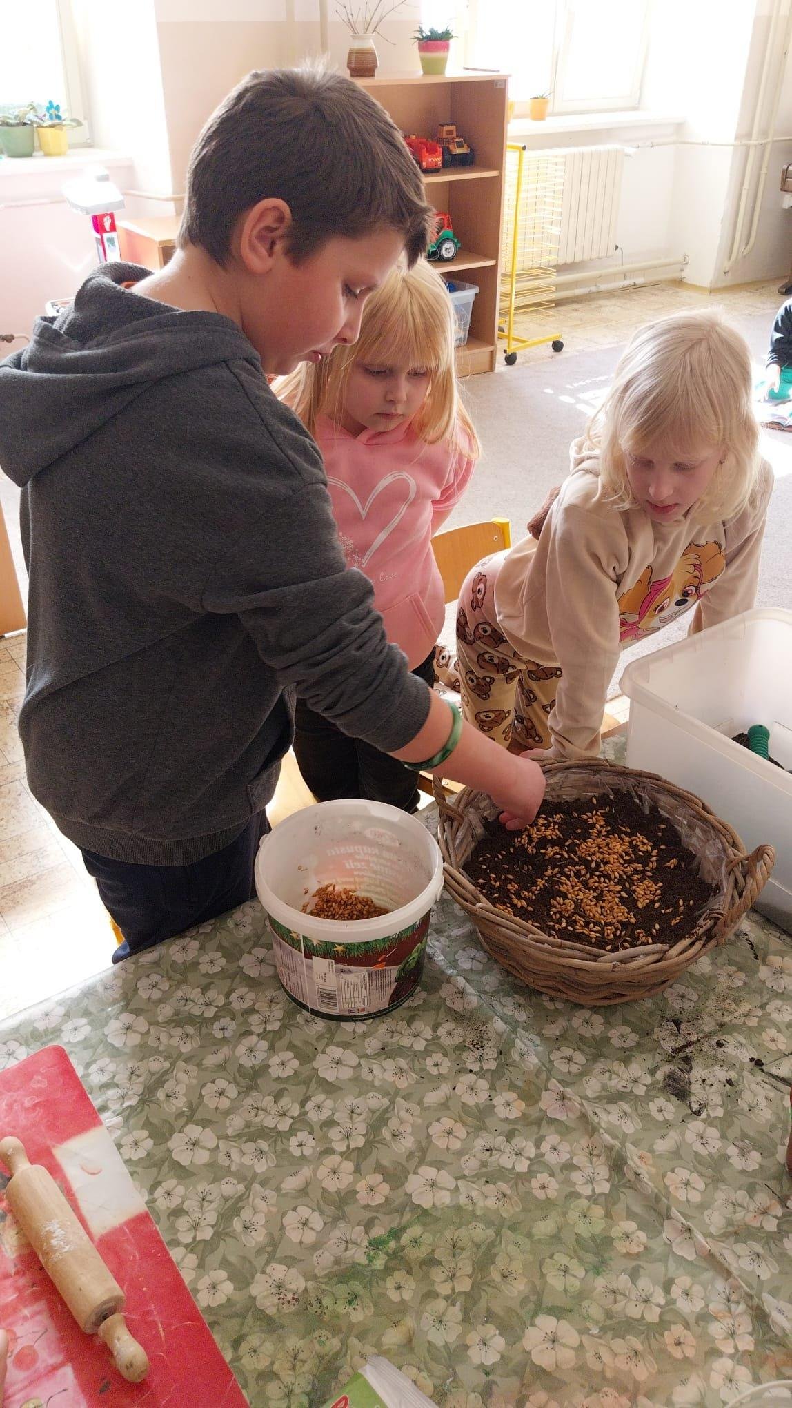 Podívejte, jak jsme si letos pohráli s velikonoční výzdobou. Ve vypěstovaném zeleném osení se schovávaji slepičky, jarní větvičky zdobí vajíčka a zajíčci a stádo oveček jsme oblékli do vlněných kabátků . Přinesli jsme si jaro až do školy a každý den nám dělá radost a dobrou náladu.
