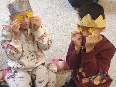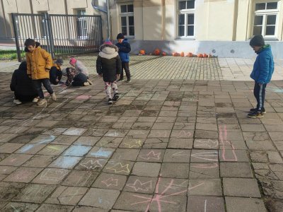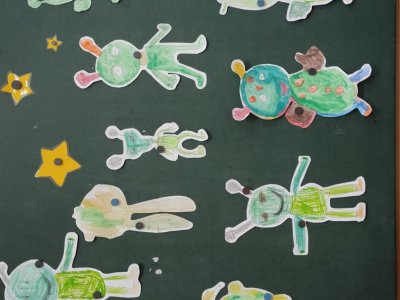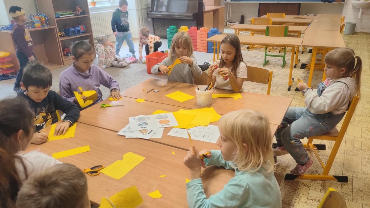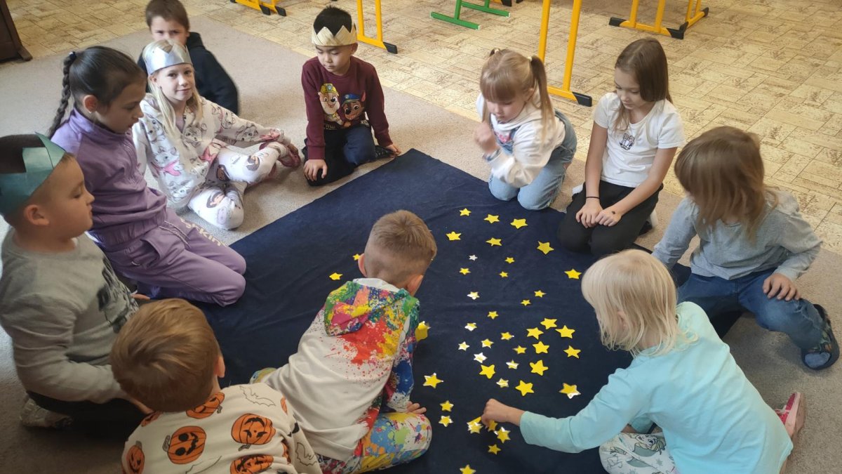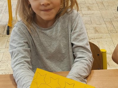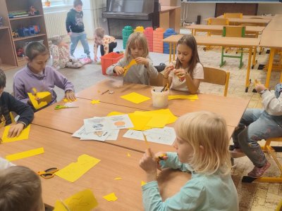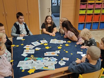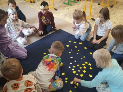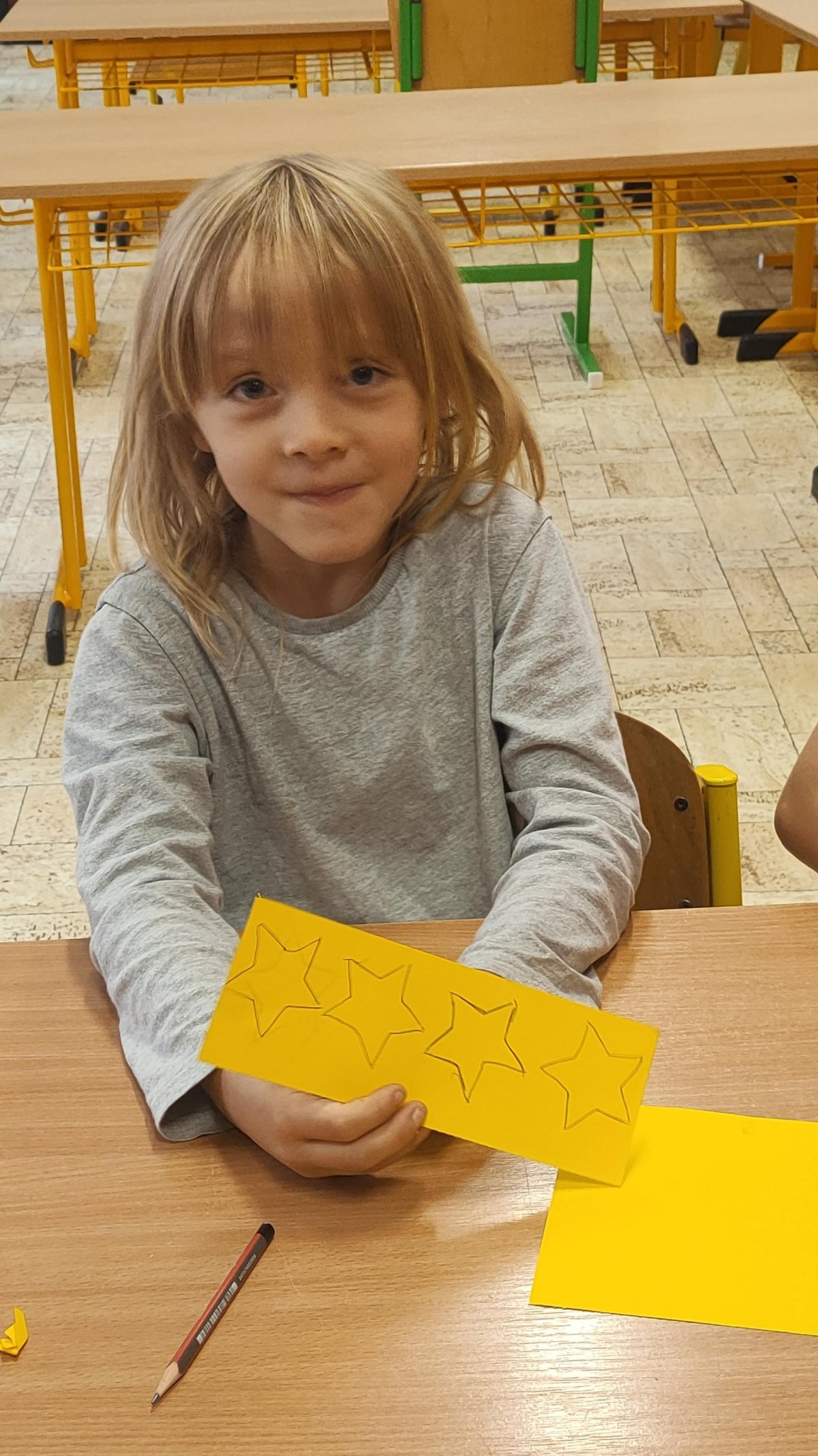 Potom nás čekala výroba hvězd. Hodně hvězd. A ty byly potřeba na venkovní vesmírnou výstavu. Podařilo se nám z nich sestavit známé souhvězdí Orion a souhvězdí Kasiopea. Bylo to zábavné, protože jsme si s hvězdami mohli i pohrát a sestavit jakékoliv jiné souhvězdí.