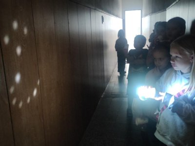 To nejlepší mělo ale teprve přijít. Vybaveni papírovými kelímky a baterkami jsme si ve tmě promítali na zeď různá seskupení hvězd. Nebylo v tom žádné kouzlo. Stačilo do dna kelímku udělat otvory, kterými projde světlo baterky a hned se na zdi nebo na stropě objevily hvězdy.