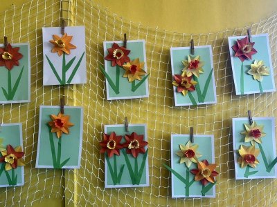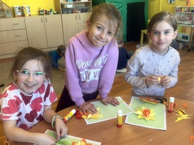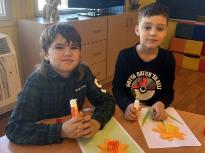 S počátkem jara se v přírodě objevily i první jarní květinky. Nejdříve vykoukly ze země sněženky, po nich přišly narcisky a každým dnem přibývají další a další. O všech kytičkách jsme si povídali, přečetli jsme si o nich pohádku a dokonce jsme si je společně vyrobili. Dětem se tvoření moc povedlo a jejich výtvory teď zdobí naši družinu.