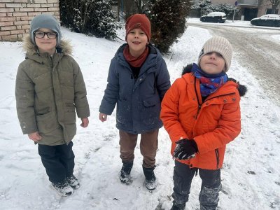 První den byla nadílka skromnější, a tak jsme si zimní atmosféru užívali hlavně na hřišti. Stačil ale jediný den a krajina se změnila k nepoznání. Schválně, poznáte na fotkách ten rozdíl mezi prvním a druhým dnem?