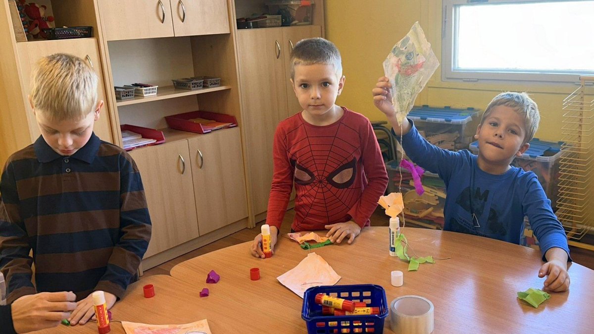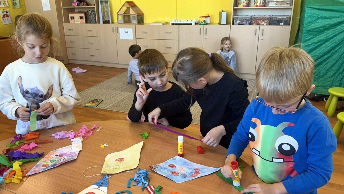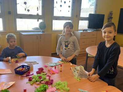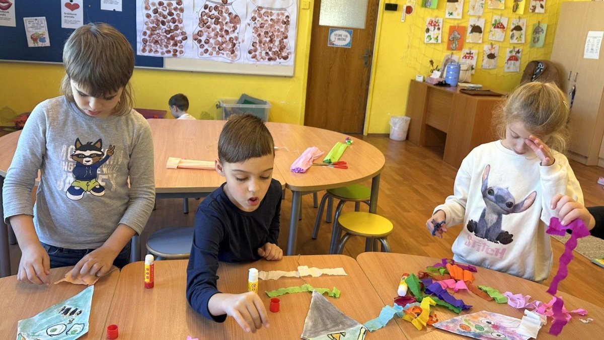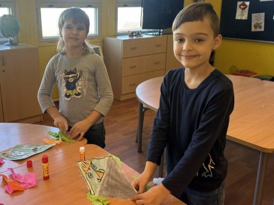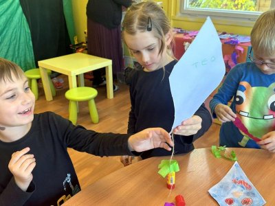Všechny děti práce moc bavila. Teď nám naši draci létají na nástěnce v družině a zdobí celé naše oddělení. Podzim skutečně patří drakům.