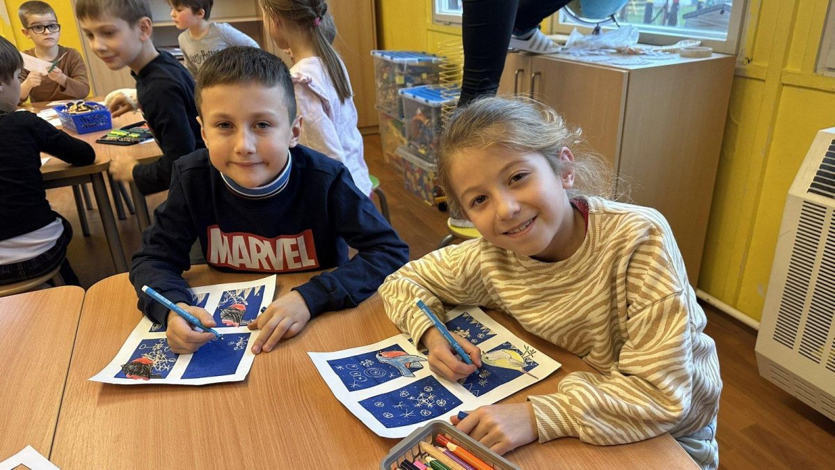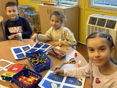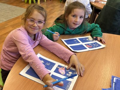 Tento týden jsme zažili opravdovou zimu. Mrazivé počasí nám vykouzlilo na oknech nádherné ledové ornamenty a venku občas i tiše sněžilo. Tato zimní atmosféra nás inspirovala k vytvoření nových výtvarných prací.