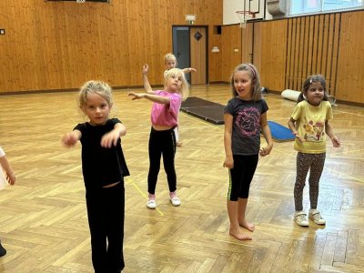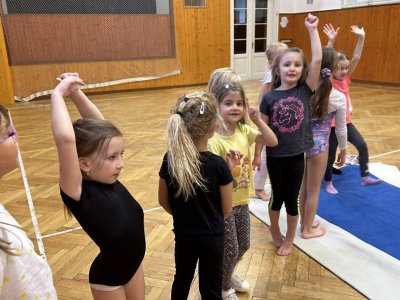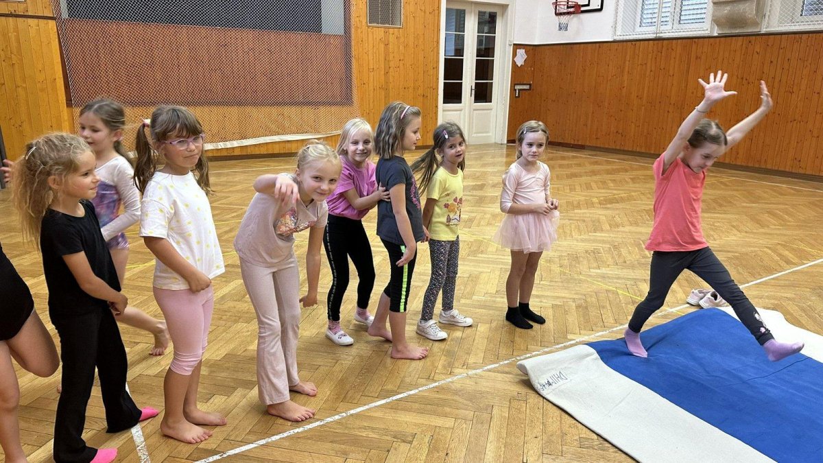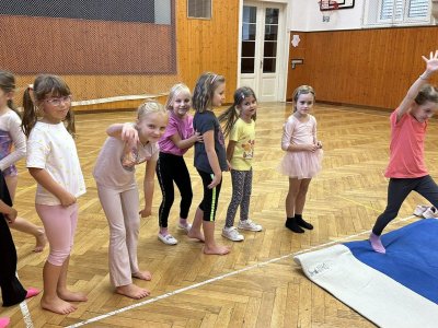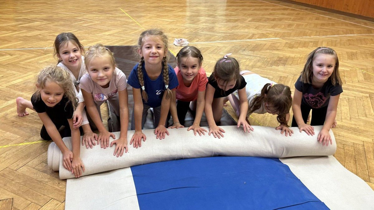 Hned při první hodině jsme začali pořádnou rozcvičkou, abychom si protáhli všechny svaly. Pak jsme se pustili do skoku přes vodu, což nás pořádně bavilo. Největší pozornost jsme však věnovali nácviku kotoulů, stojek a hvězd. Každý se snažil ze všech sil a vidět pokroky už během prvního tréninku bylo skvělé!