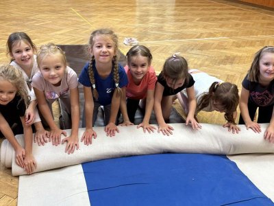Po roce jsme se opět sešli v tělocvičně a zahájili naše gymnastické tréninky. Každé pondělí se budeme společně scházet, učit se nové prvky a zdokonalovat ty, které už umíme.