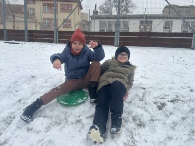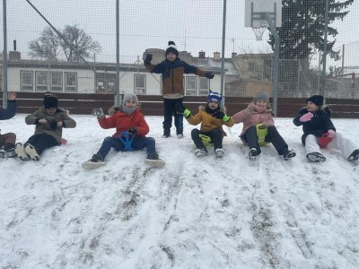 Začátkem února nás potěšila trocha sněhu, a tak jsme neváhali a vyrazili ven. Sice v družině nemáme saně, ale skvěle nám posloužily i lopaty, se kterými jsme se prima vyřádili. Abychom zůstali zdraví a neprochladli, užili jsme si běhání a hry v bílé peřině jen krátce a pak se hned vrátili do tepla. I tak to byla skvělá zimní zábava!