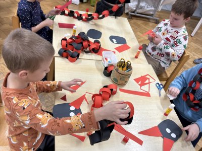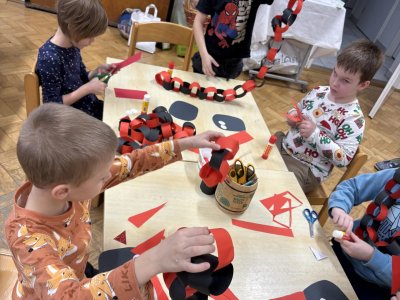 Pro hodné děti je to příchod anděla, ale pro zlobivé to znamená příchod čerta. My jsme si proto společně vytvořili takový “talisman” proti čertům. Děti si vyrobily čerta s řetězem, který je měl ochránit před samotným čertem. Do družiny se nám tedy všechny děti vrátily a čert si nikoho neodnesl.