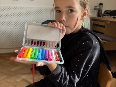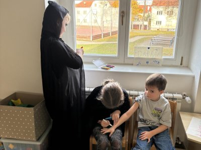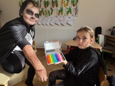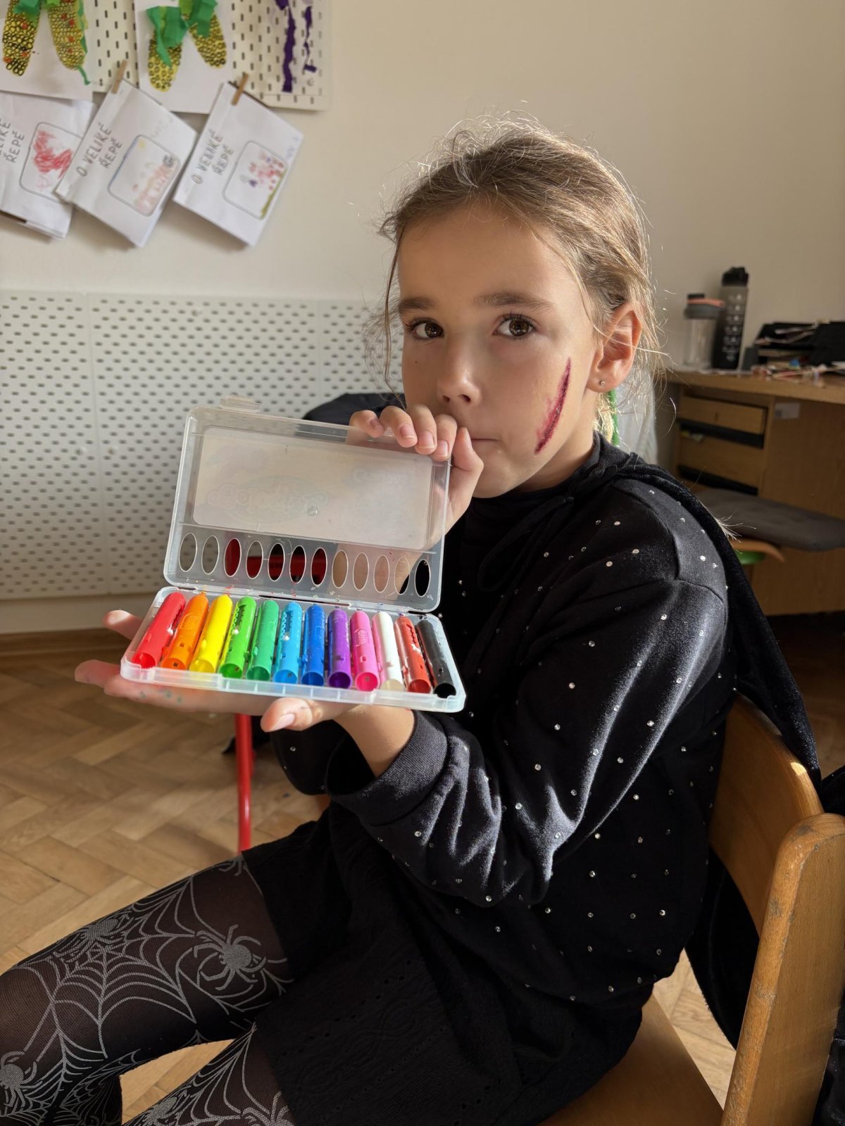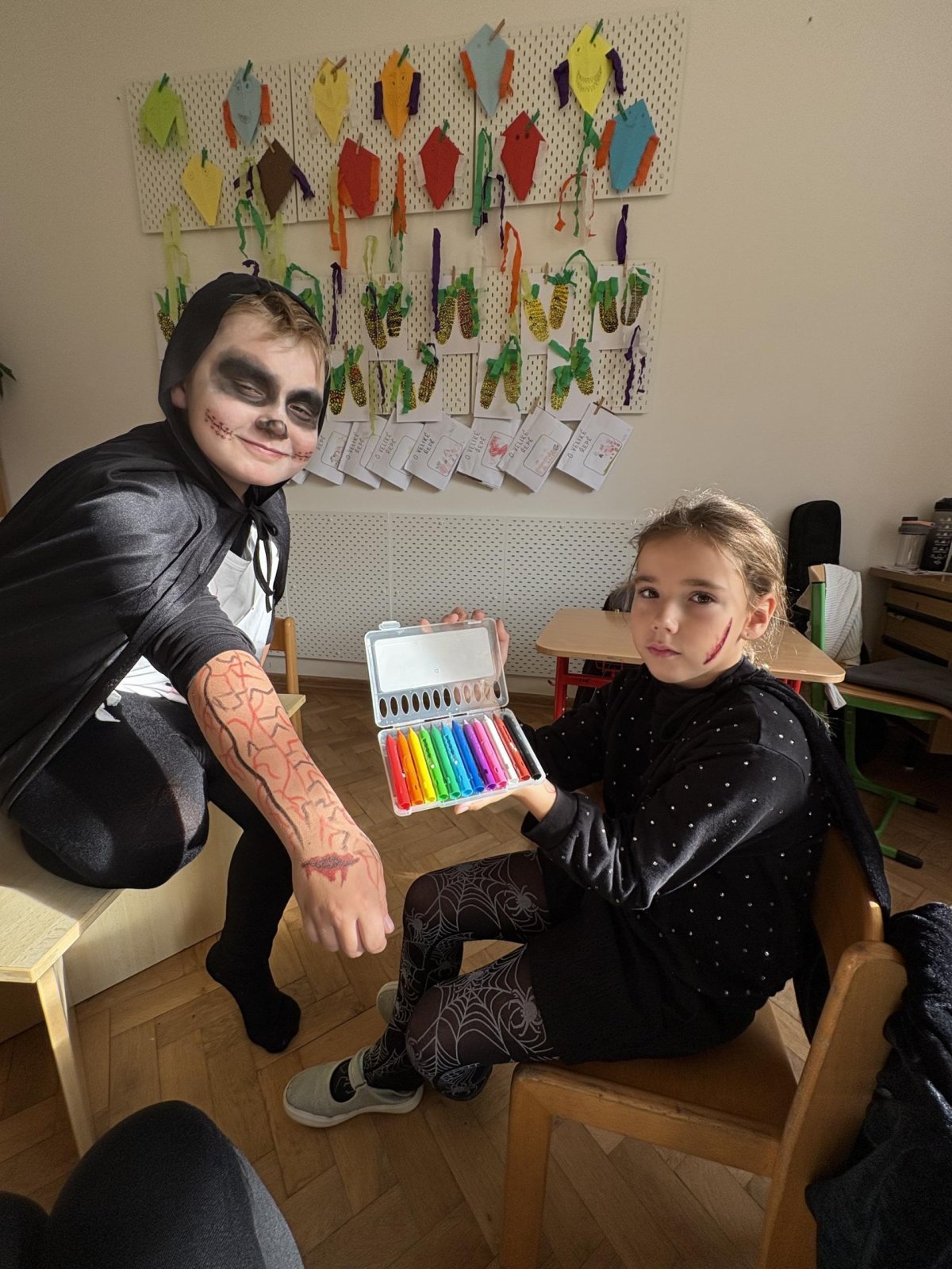Děti se ponořily do kouzelného světa Halloweenu – tvořily strašidla, soutěžily v hrách a malovaly v našem strašidelném koutku. Tvořivost a fantazie nechyběla nikomu. Strašidelný den jsme si všichni náramně užili !