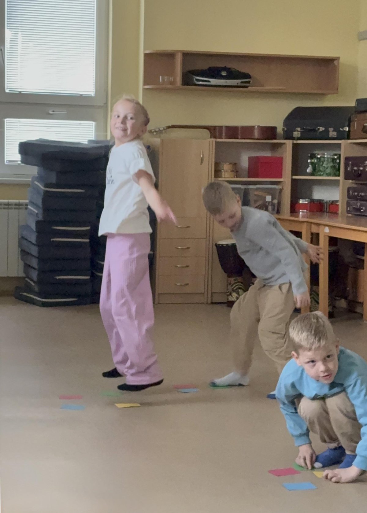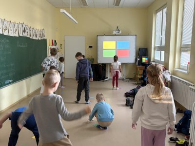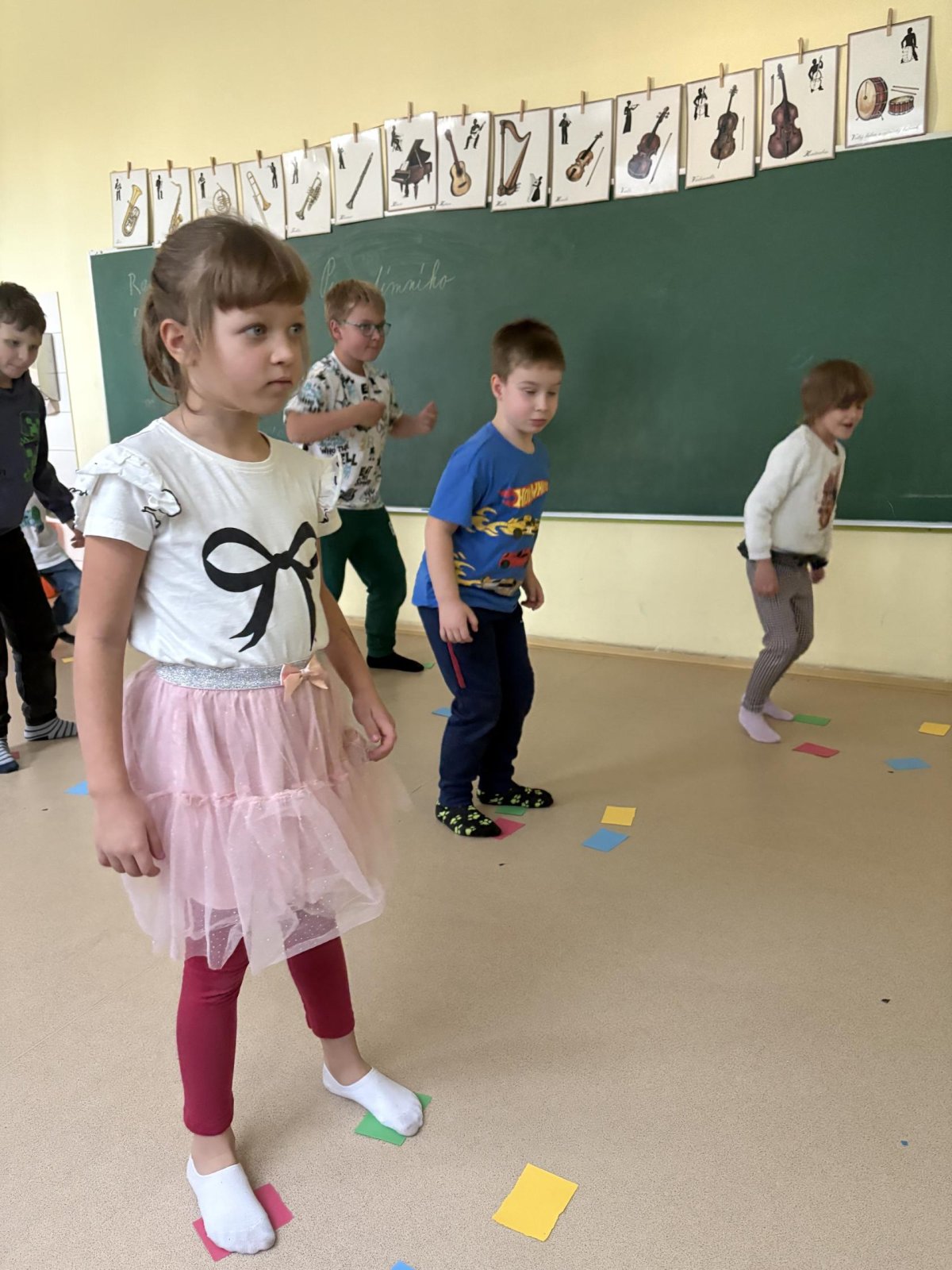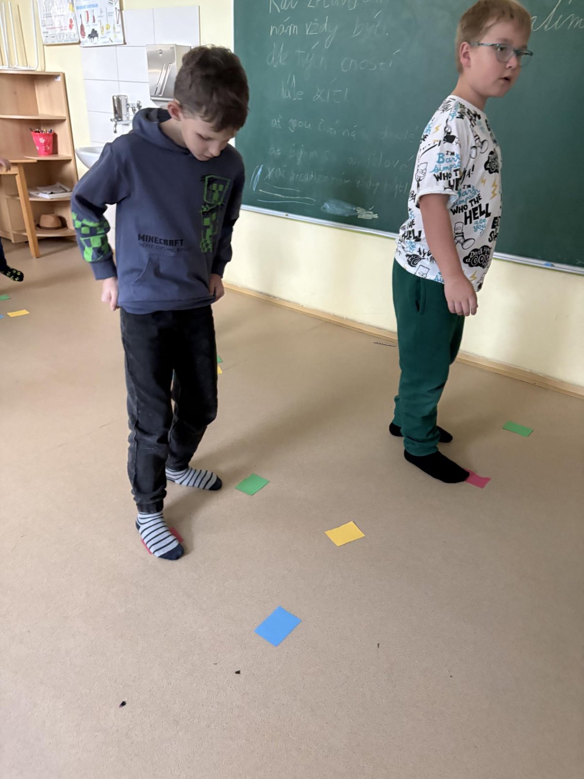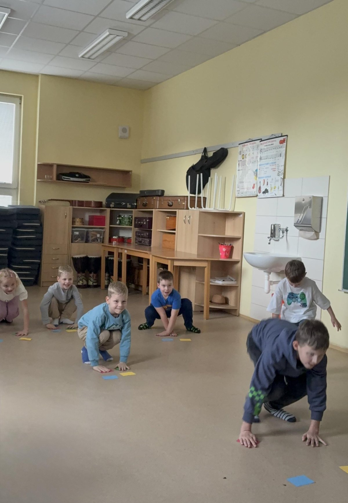 Dnešní odpoledne proběhlo ve znamení rytmu a pohybu. Děti dostaly barevné kartičky a podle videa se snažily co nejrychleji dotýkat správných barev. Cvičily tak své reflexy, postřeh i koordinaci rukou a nohou. Zadání byla svižná, ale děti je zvládaly s velkým nadšením. Na závěr jsme se společně protáhli a doplnili program krátkou pohybovou zábavou.