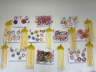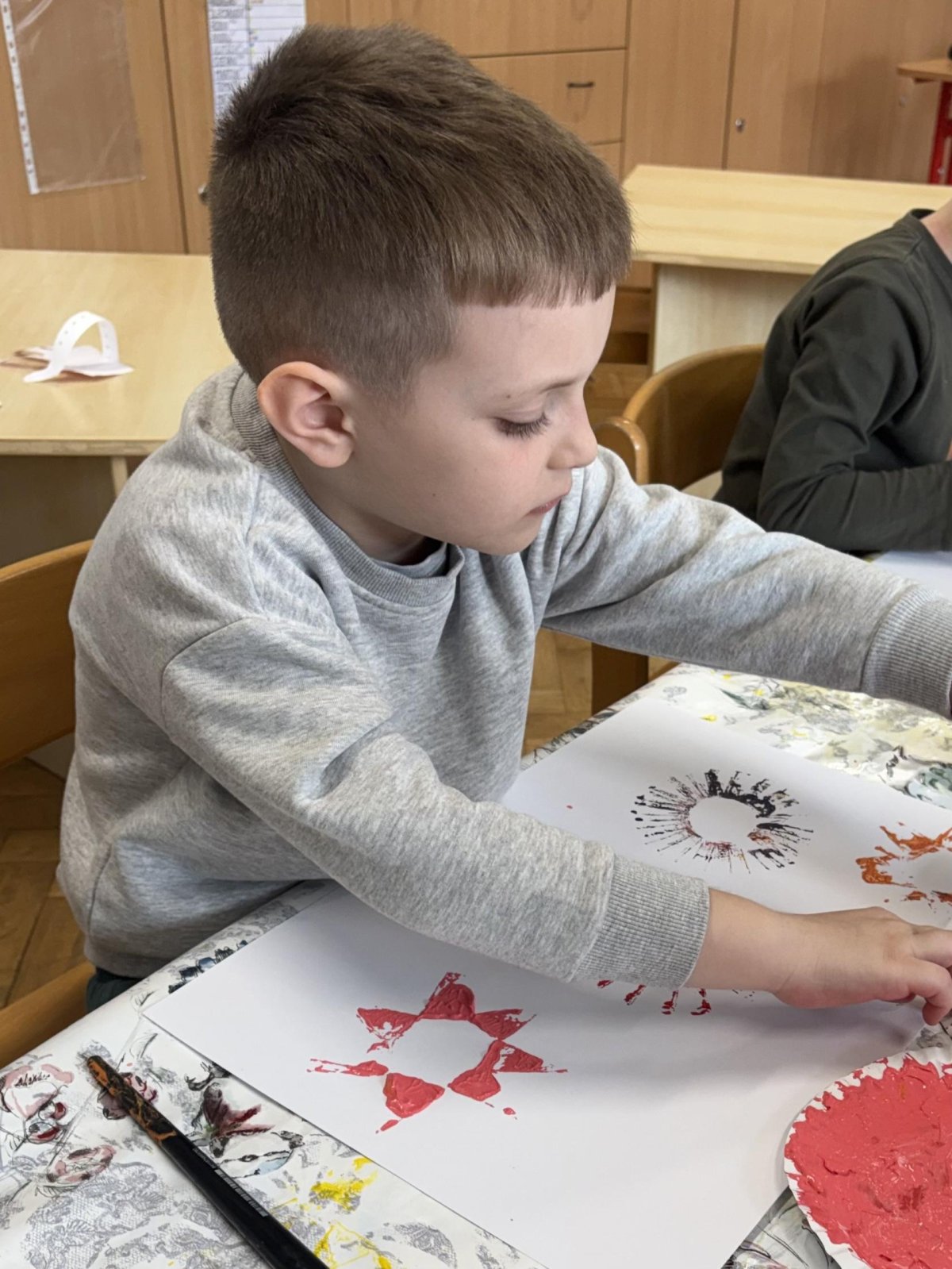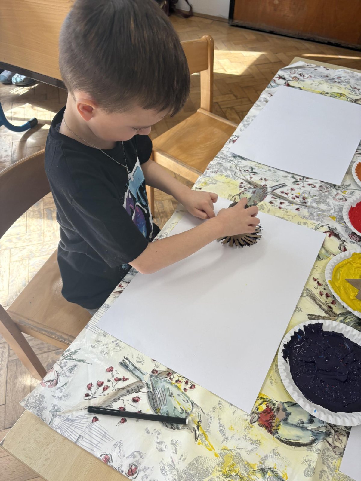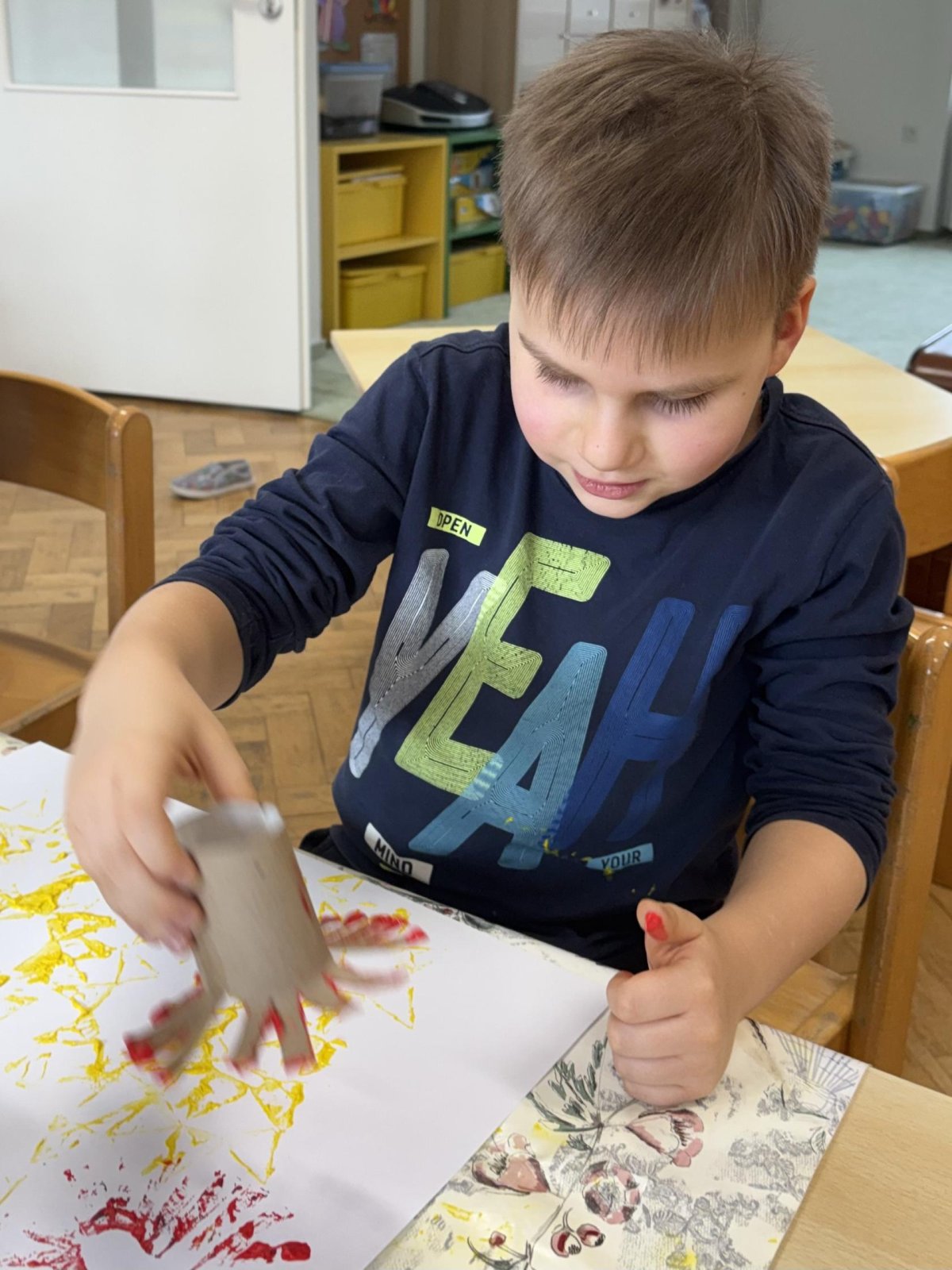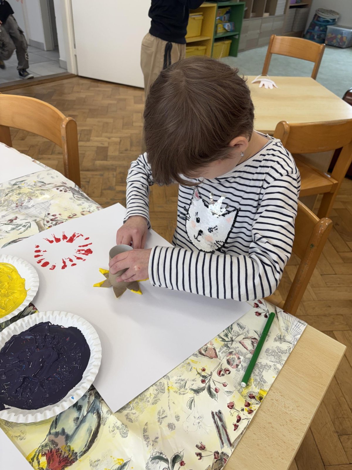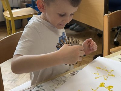 Během výtvarné činnosti děti tvořily květiny pomocí otisků, které vznikaly z papírových ruliček.