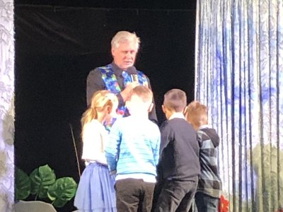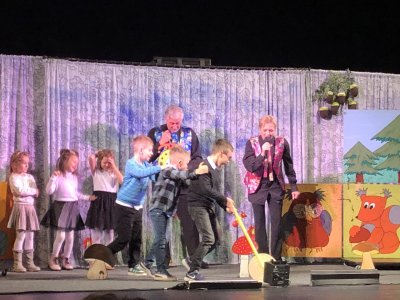 ...divadelním představením Na kouzelném paloučku, kde nechyběly ani plyšové postavičky Jů a Hele z České televize v Praze.