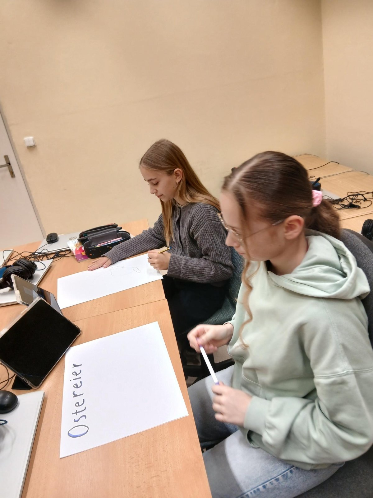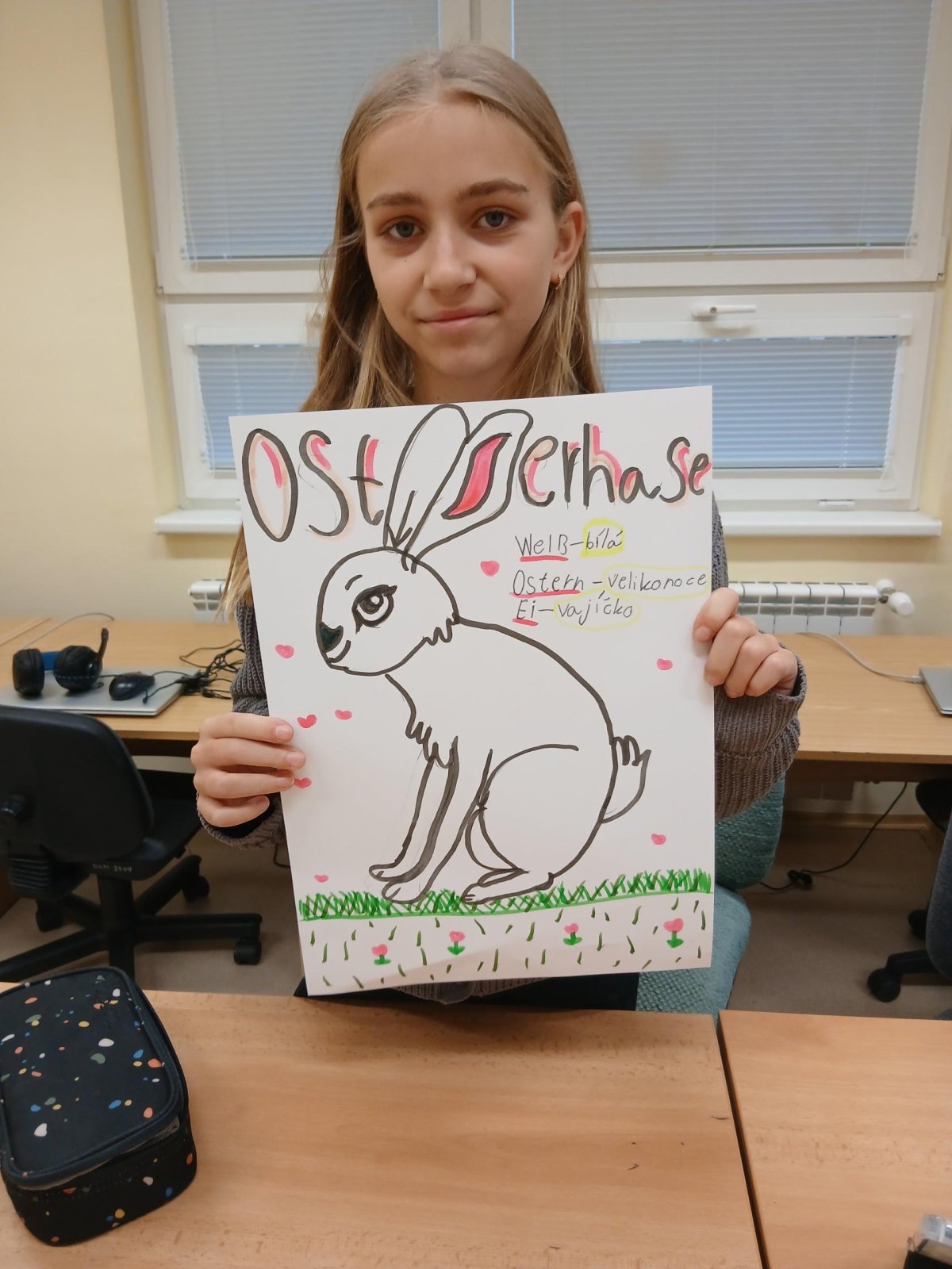 Každý si vybral motiv spojený s Velikonocemi – objevila se například vajíčka (Ostereier), velikonoční zajíček (Osterhase) nebo tradiční pomlázka. Díky propojení učení a tvoření si děti nová slovíčka lépe zapamatovaly a zároveň si rozvíjely svou kreativitu.