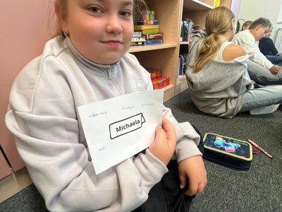 V první letošní hodině slohu jsme si povídali o jménech, jejich původu a významu, hledali jsme jména skrytá ve spirálách a opakovali jsme psaní adresy, kterou si děti ještě zopakují při domácí přípravě na předem připravené obálce. Jestli opravdu někomu napíšou třeba i dopis, to se můžeme nechat překvapit.