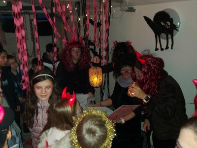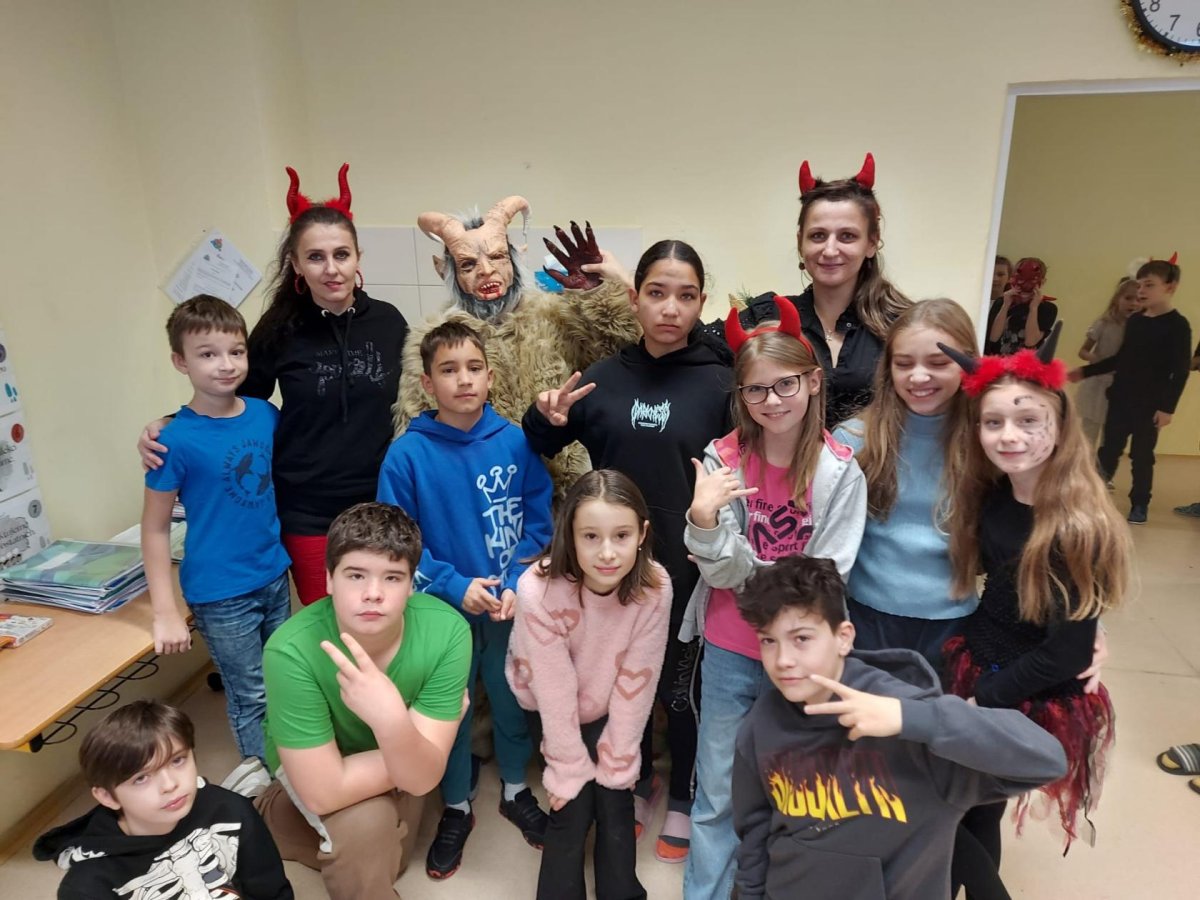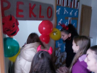 I my jsme měli ve třídě tři hříšníky, které naši čerti tak trochu pokárali. Vypili kouzelný čertovský nápoj a přislíbili nápravu, tak jim budeme věřit. Čertíkům jsme hezky zazpívali a po propuštění z Pekla jsme se chvíli věnovali čertovské výuce. Další čertovská zastávka byla v knihovně, kde jsme si doplnili své čertovské znalosti a přečetli úryvky z pekelných knih. BLE, BLE, BLÉÉÉ, JU CHU CHŮŮŮ....