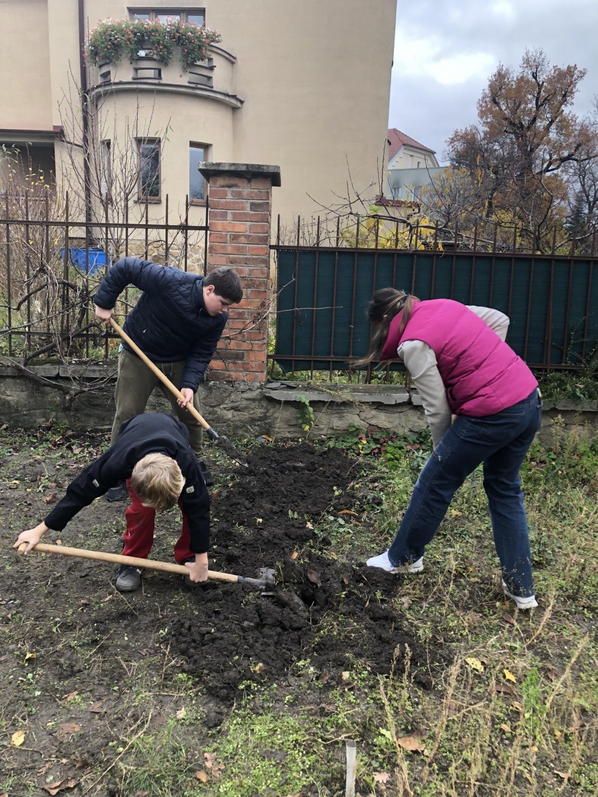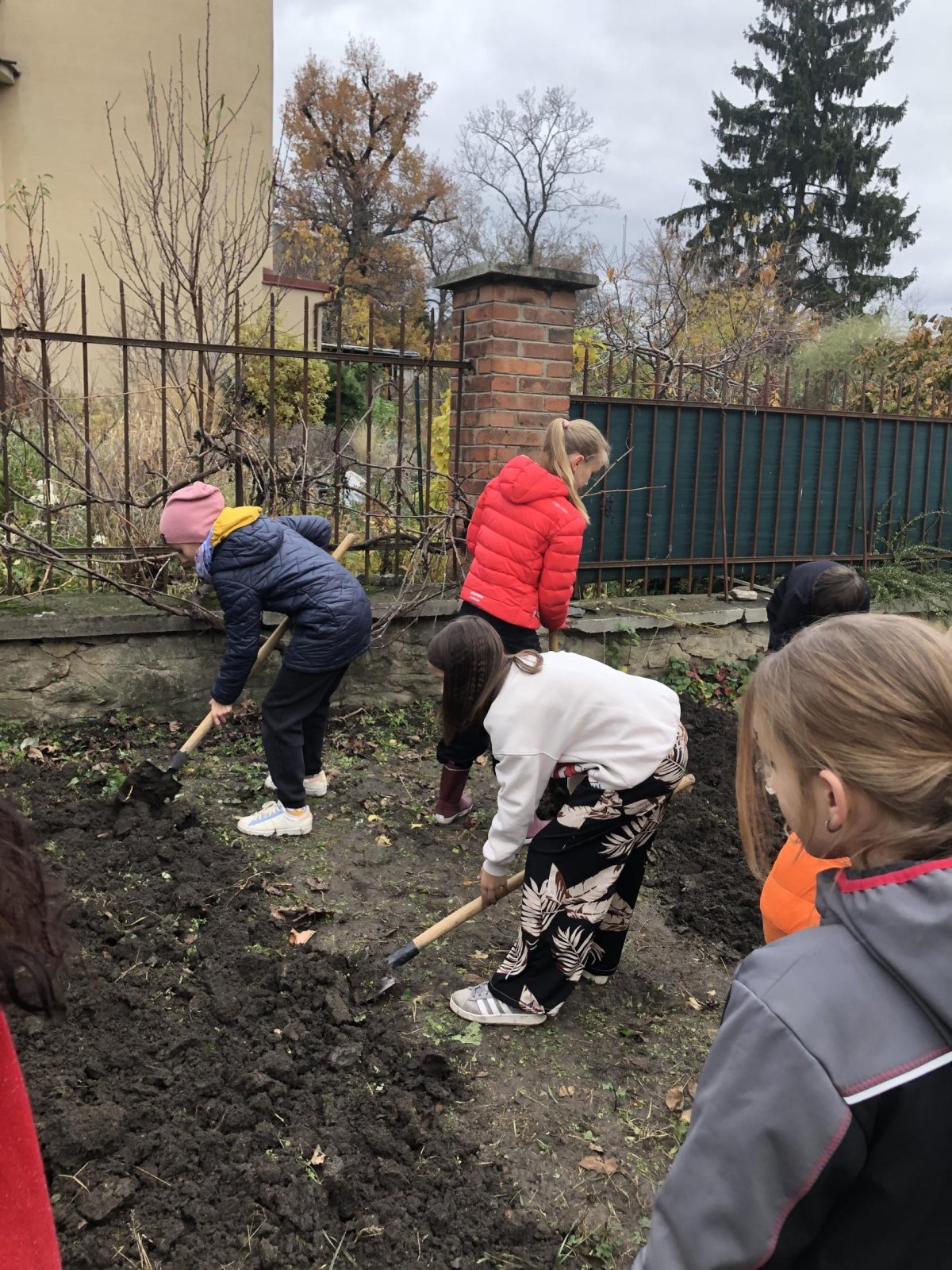 Napršelo, takže ideální čas na zrytí naších záhonků na školním pozemku. Půda byla vlhká a nám se dařilo. Nejdříve jsme odstranili plevel a zbytky rostlin a pak přišel na řadu rýč a troška dřiny. Povedlo se a my měli příjemný pocit z dobře vykonané práce.