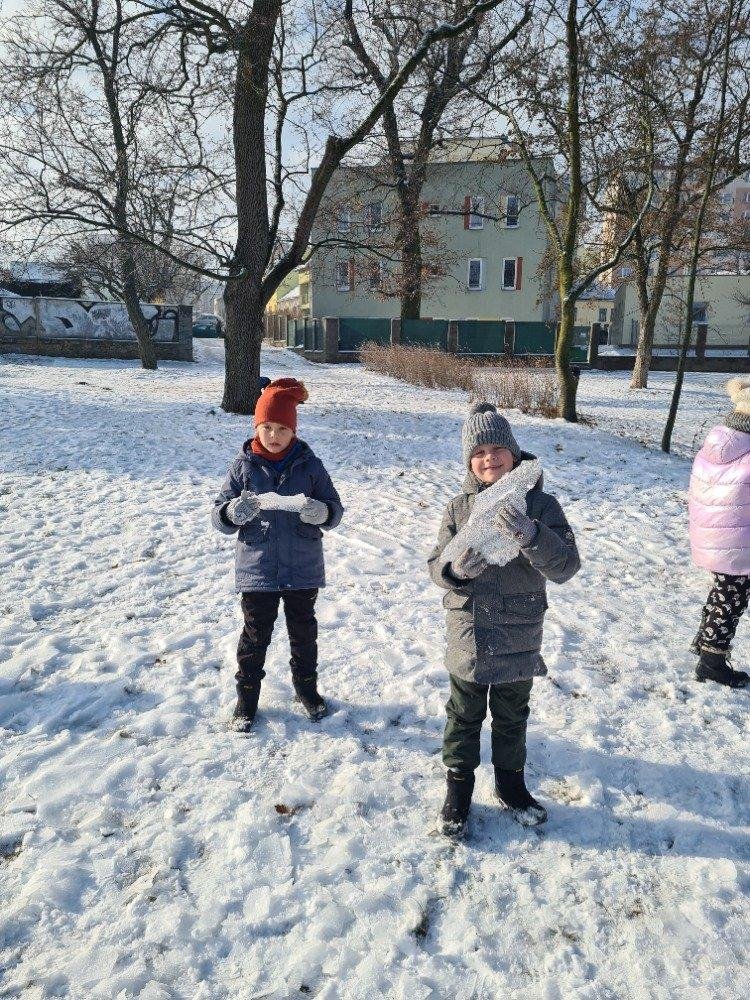 A je tu leden, hned první den nás čekalo divadelní představení, které se dětem líbilo. A už nás pohltila mrazivá zima. Děti si ji užívají, hrou na sněhu, klouzáním, pozorováním a zkoumáním ledových ker, vyhledáváním zimních stop a nesmí chybět ledové pokusy. A tak se vždy vrací s červenými tvářičkami a není čas vnímat chlad a zimu.