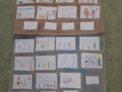 Text známé dětské písně - i my jsme se učili poznávat nejen dny v týdnu, ale i roční období. Seznamovali jsme se s charakteristickými znaky každého období - oblečení, počasí, typické sporty a činnosti, svátky a zvyky, změny v přírodě, přizpůsobení zvířat a rostlin. Snažili jsme se i zapamatovat si datum svého narození a zařadit ho do našeho kruhu ročních období. Výsledkem bylo vytvoření "mapy" ročních období nejen na tabuli, ale i pomocí charakteristických obrázků ročních období dětmi. Na nich jsme se učili popisovat věci a činnosti celou větou, nejlépe už rozvitou.
