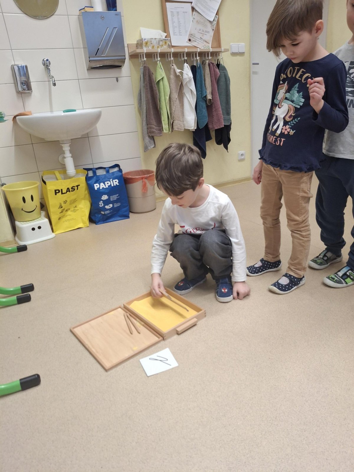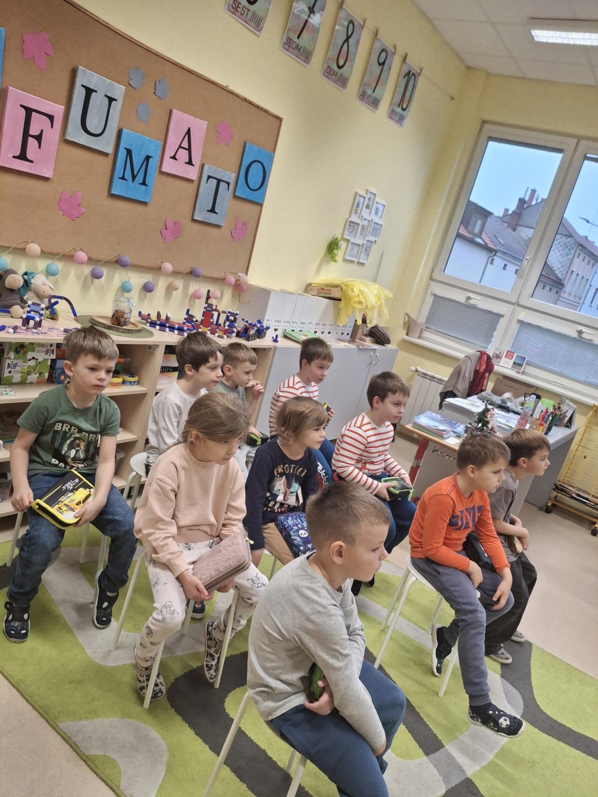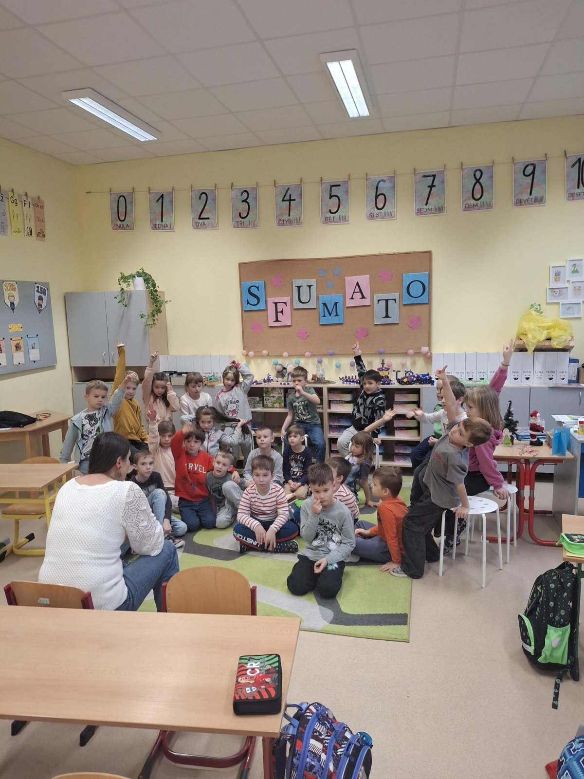 Prvňáčci, kteří prošli "přípravkou" se rádi pochlubí, co už všechno umí, a my se zase rádi podíváme, jak to v 1.třídě chodí. Společně jsme si vyzkoušeli písmenka, grafomotoriku do písku, počítat do 20 i zazpívat písničku.