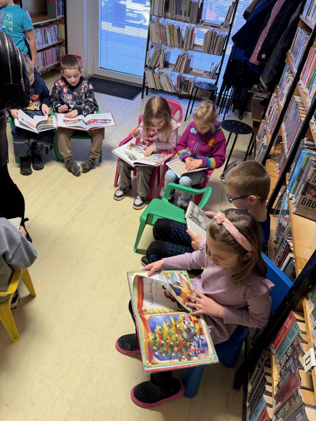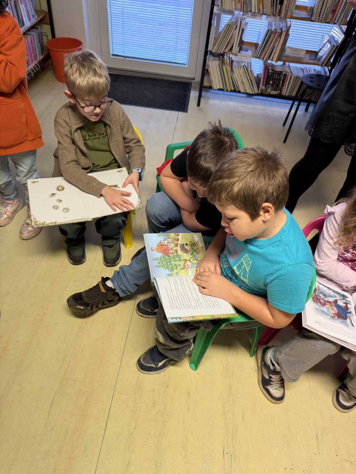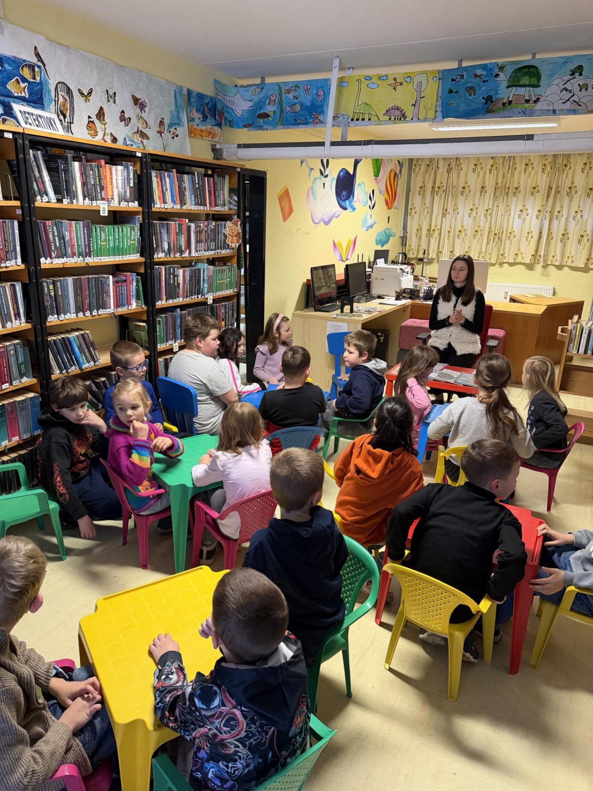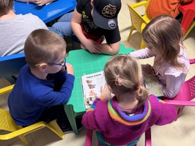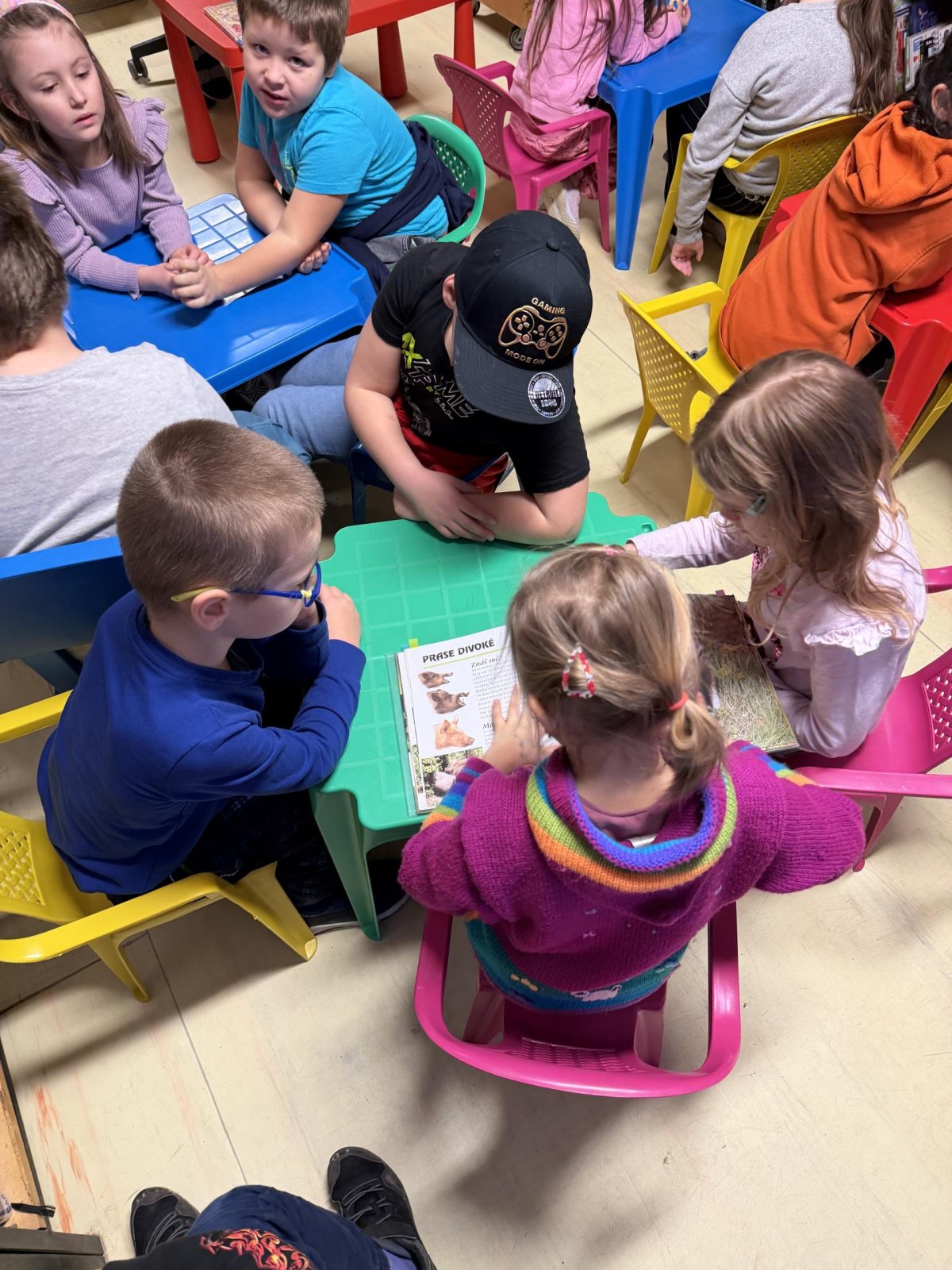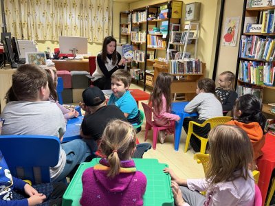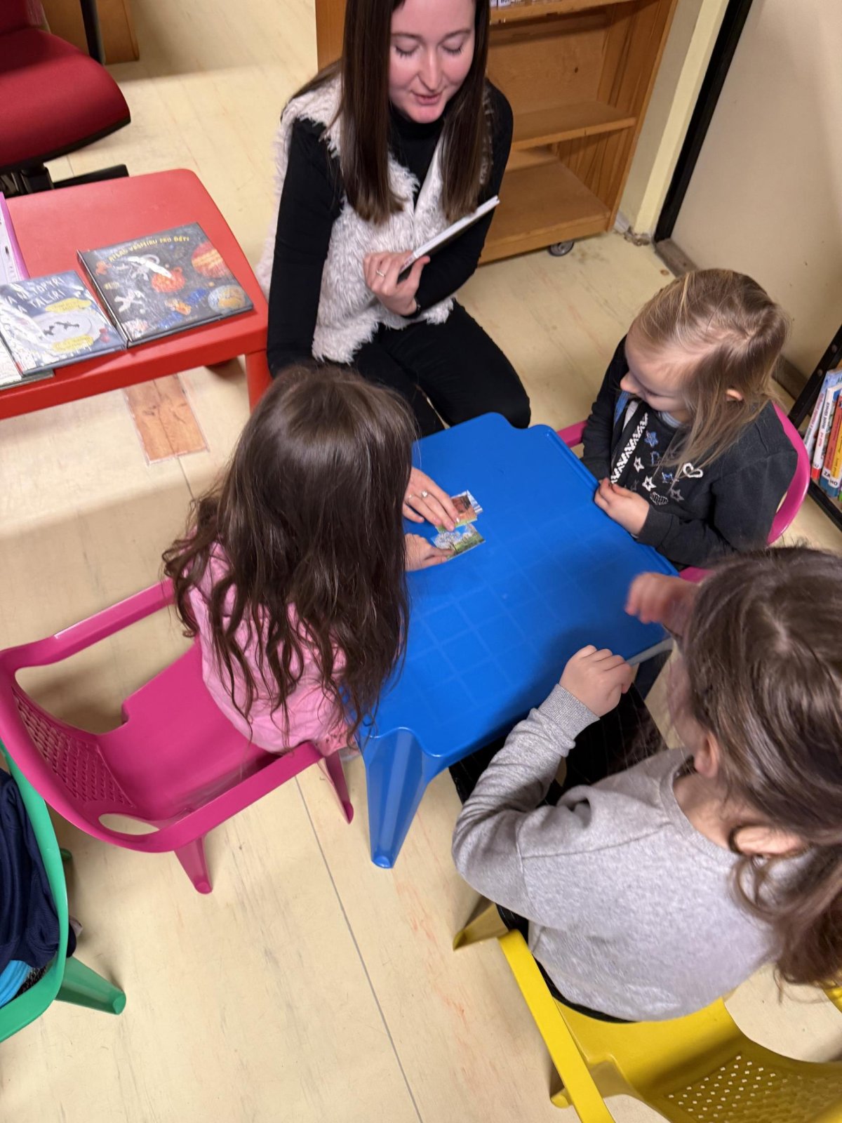 Společně jsme si také povídali o tom, jak se ke knihám chovat, aby vydržely dlouho hezké i pro další čtenáře. Děti si vyzkoušely práci s knihou – prohlížely si dětské knížky, hledaly obrázky, poznávaly autory a názvy knih. Nechybělo ani společné čtení krátkého příběhu, o kterém jsme si potom povídali.