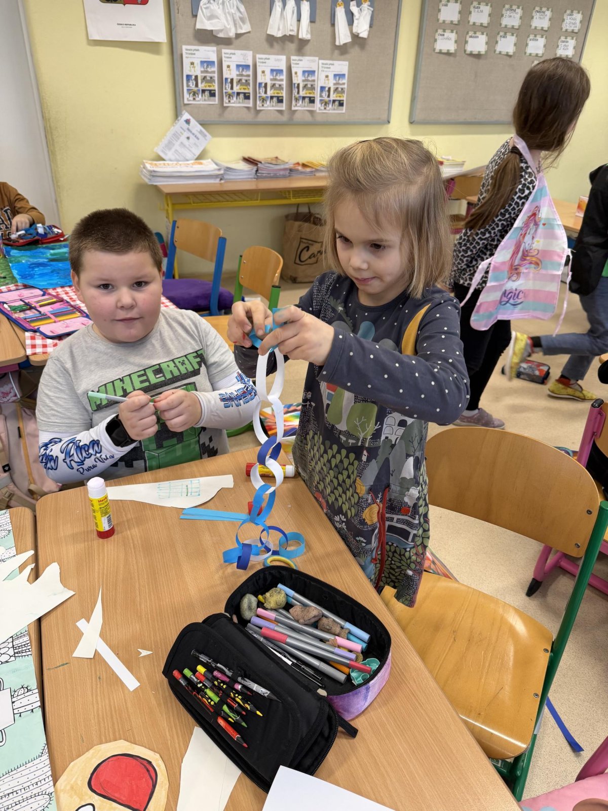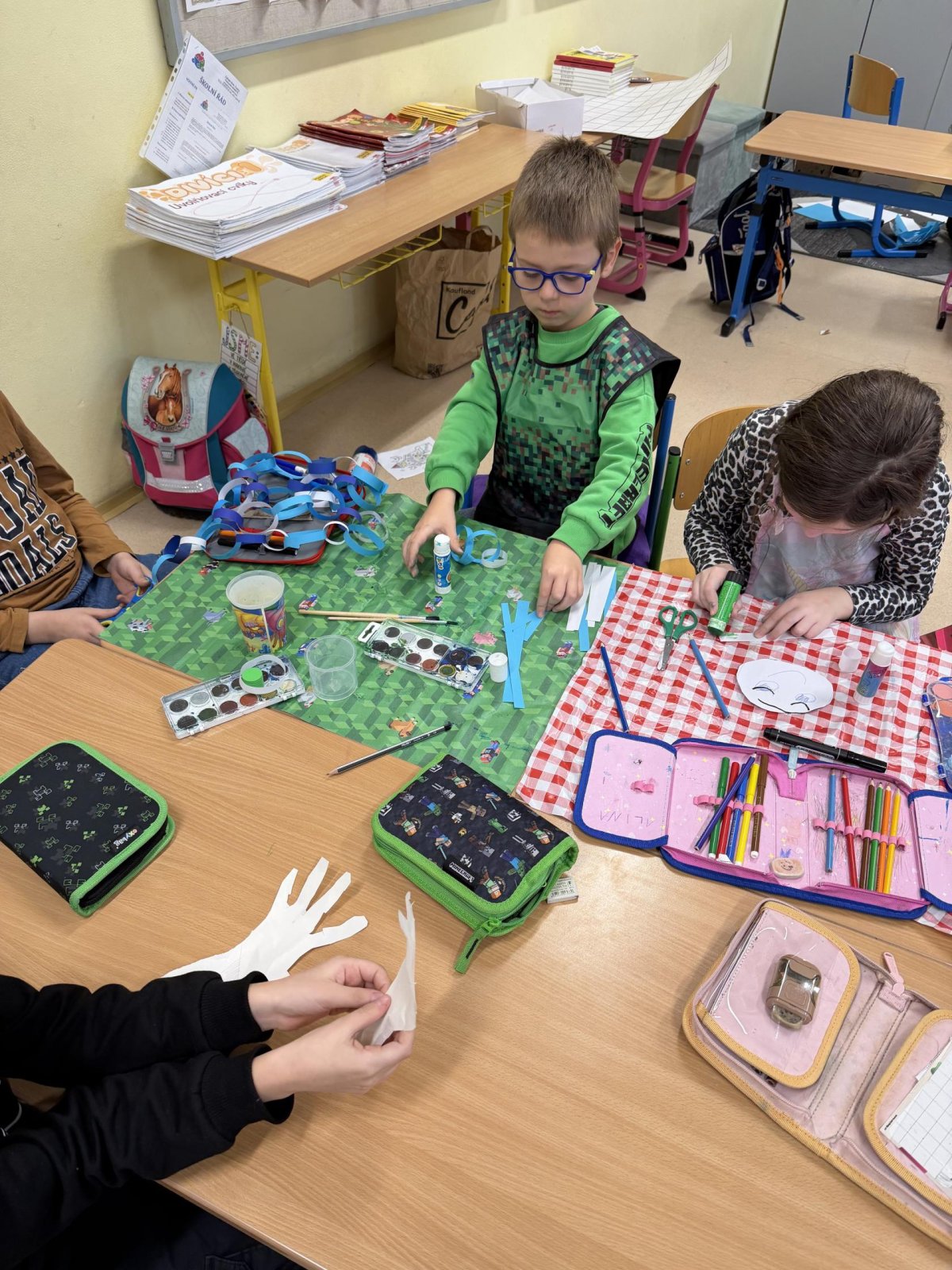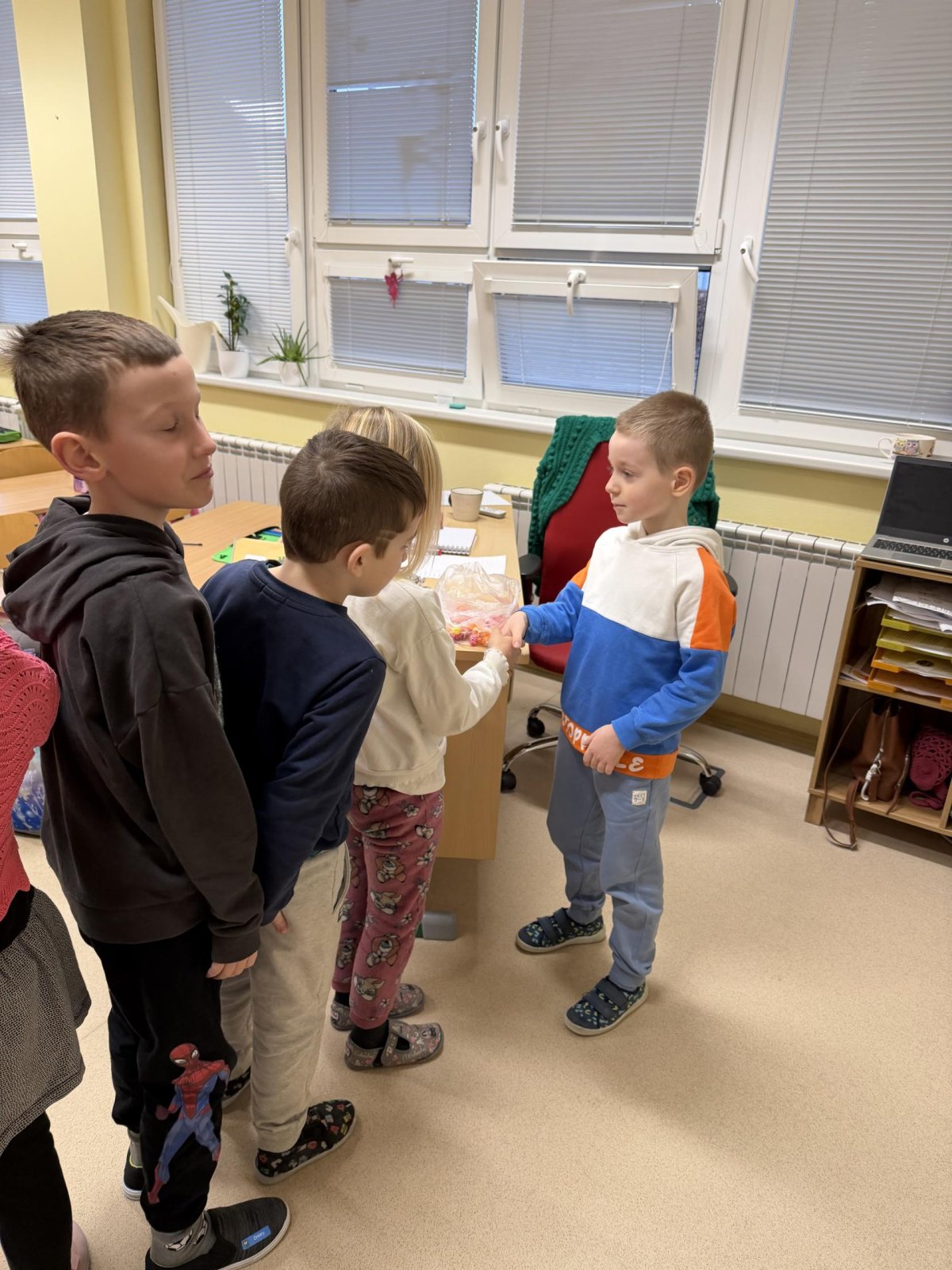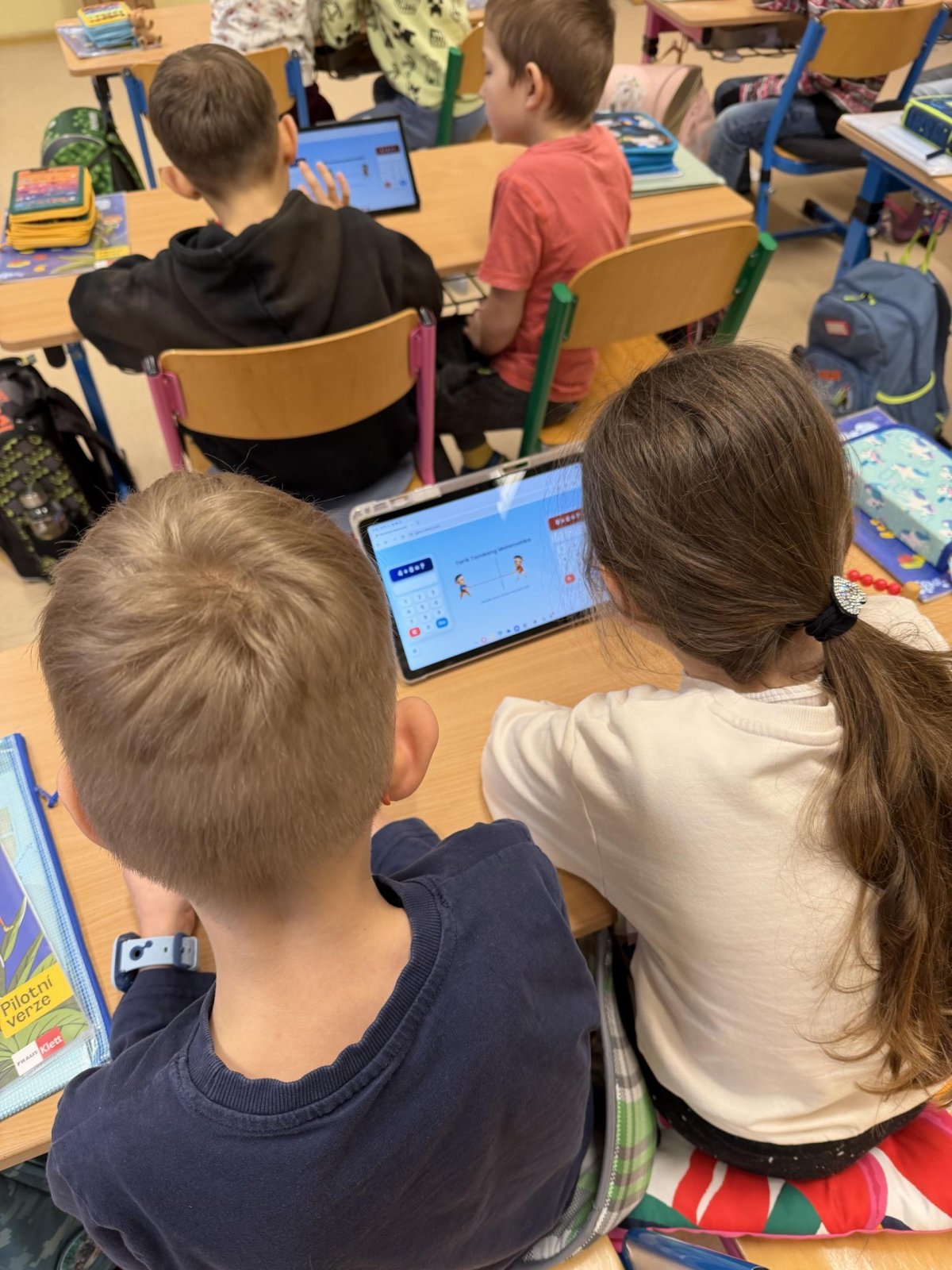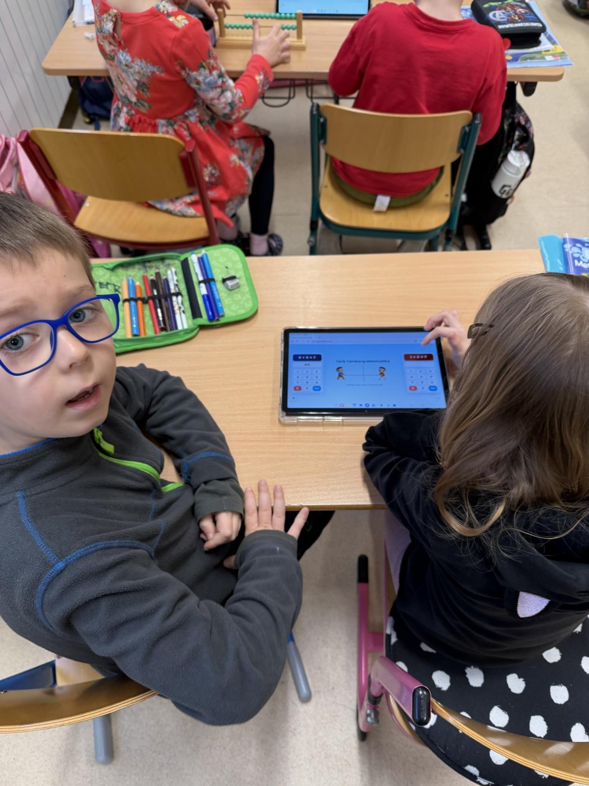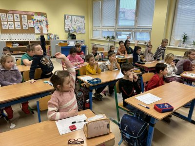 Několikrát nás přišli navštívit předškoláčci z mateřských školek, aby se podívali, co vše už umíme a jaké to ve škole vlastně je. Stihli jsme si vyrobit paní Zimy a zopakovat počty na tabletech, to byla pro nás zábava :).