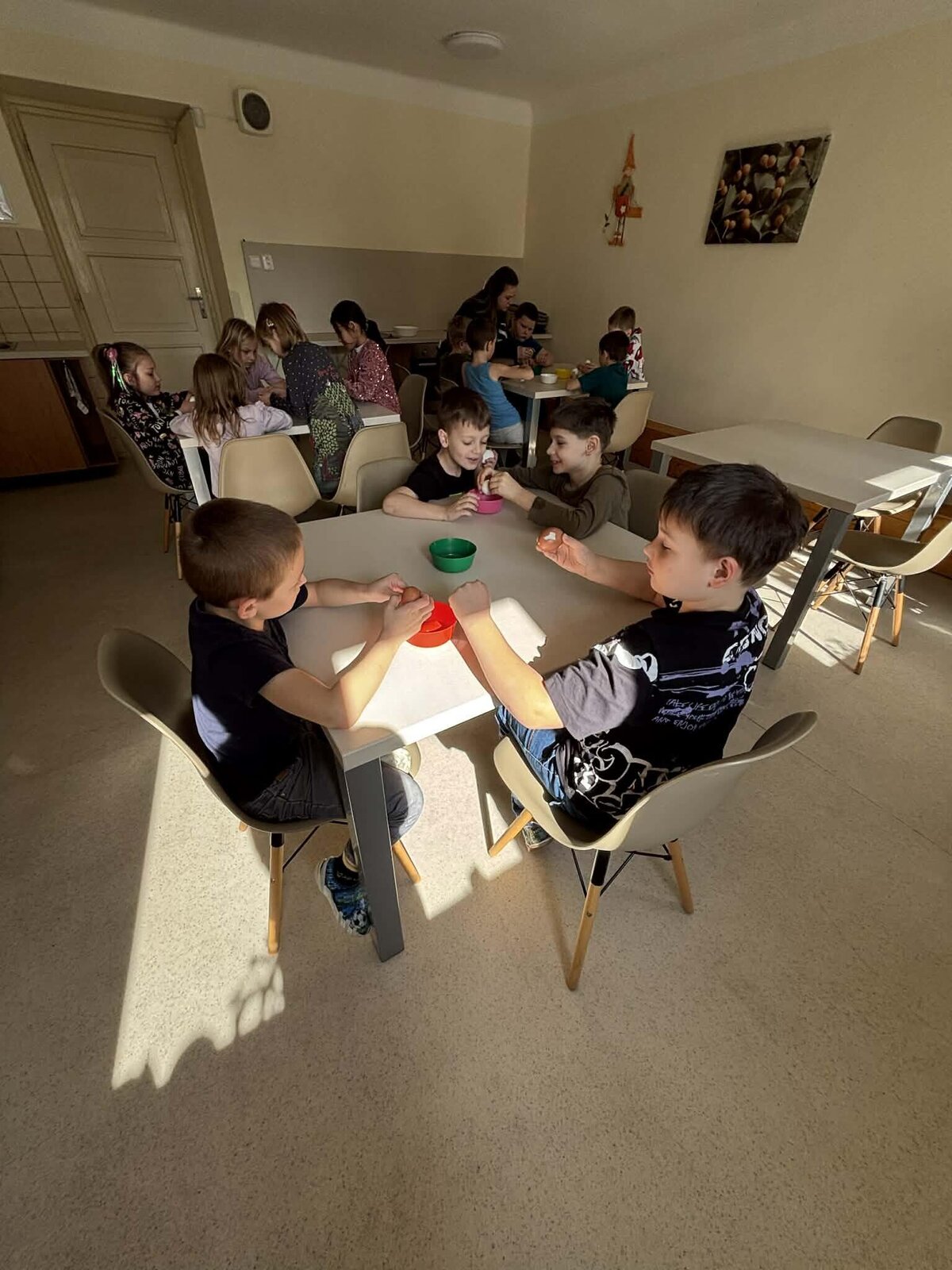 Ještě před Velikonocemi jsme si s dětmi vyzkoušeli společné vaření a připravili jsme si vaječnou pomazánku. Povídali jsme si o tom, jaké suroviny budeme potřebovat a jak správně postupovat.