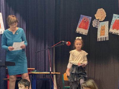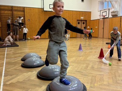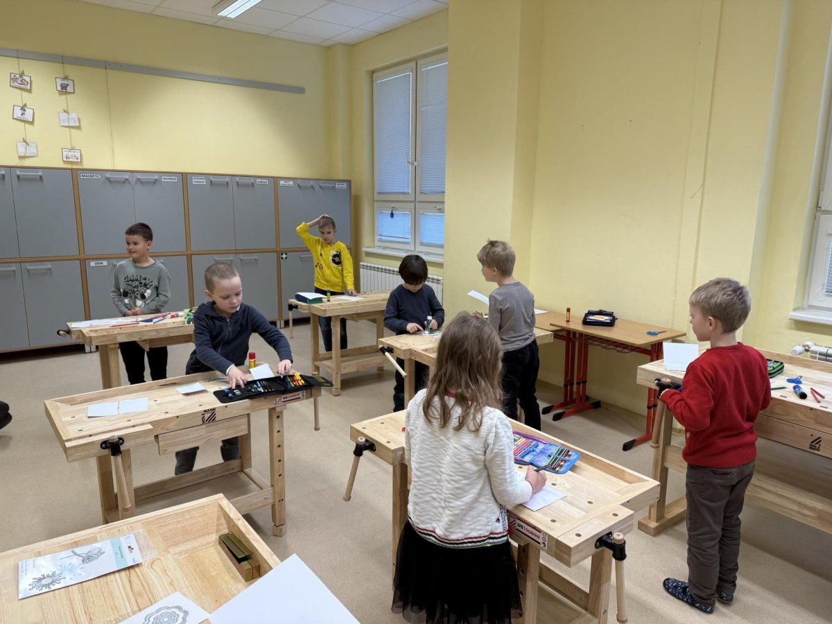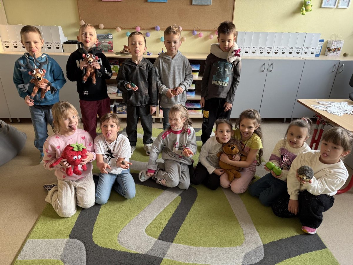 Střípky ze sportovního dne, účastníci Slavíčka a recitační soutěže, stavebnice Seva, práce v dílnách s vyřezávacím strojem BigShot, matematické hrátky, divadlo, nové písmeno J...