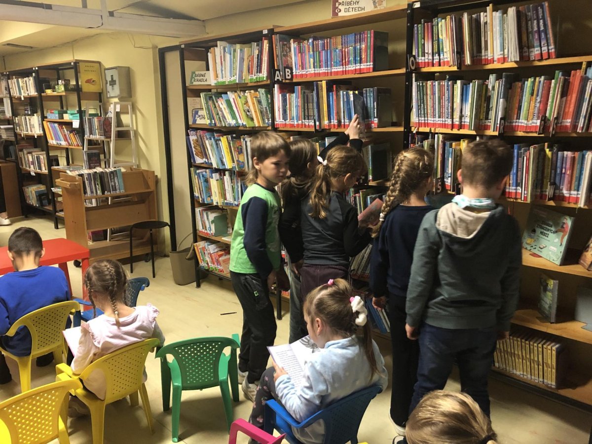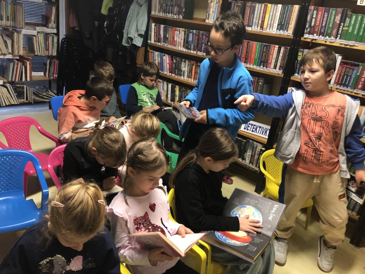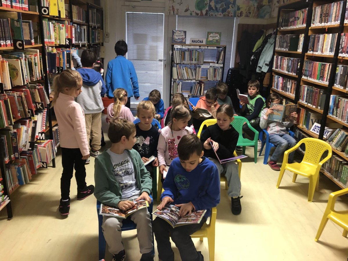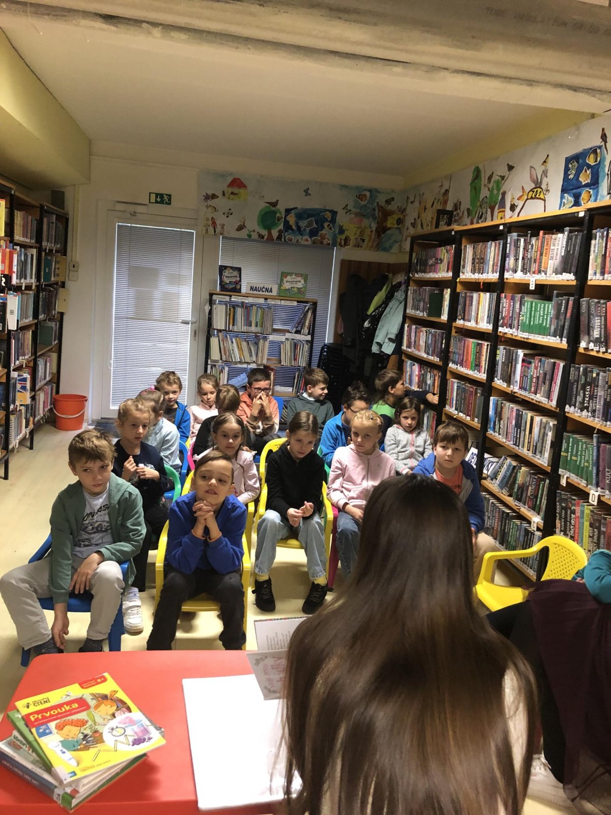 2.A začala chodit do knihovny na Gagarinku. Byla to naše již druhá návštěva, ale první návštěva ve 2. třídě. Nová paní knihovnice nás seznámila s pravidly chování v knihovně, s uspořádáním knížek v regálech a s tím, jak se chovat ke knížce. Také víme, že knížka je náš přítel, který nám dělá společnost a umí nás potěšit. Dostali jsme přihlášky do knihovny a od příští návštěvy se z nás stávají čtenáři, kteří si při pravidelných návštěvách budou knihy půjčovat a radovat se z nich.