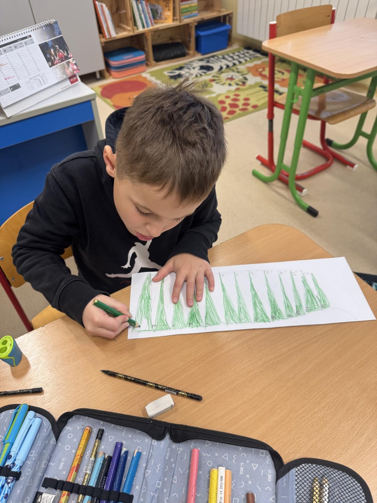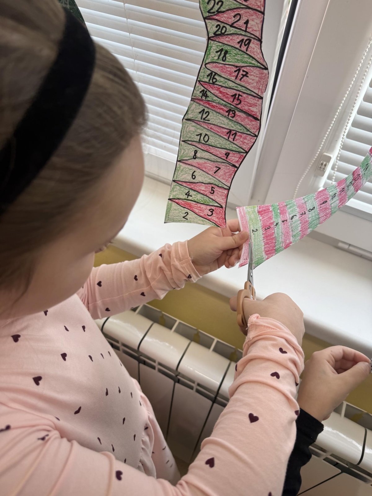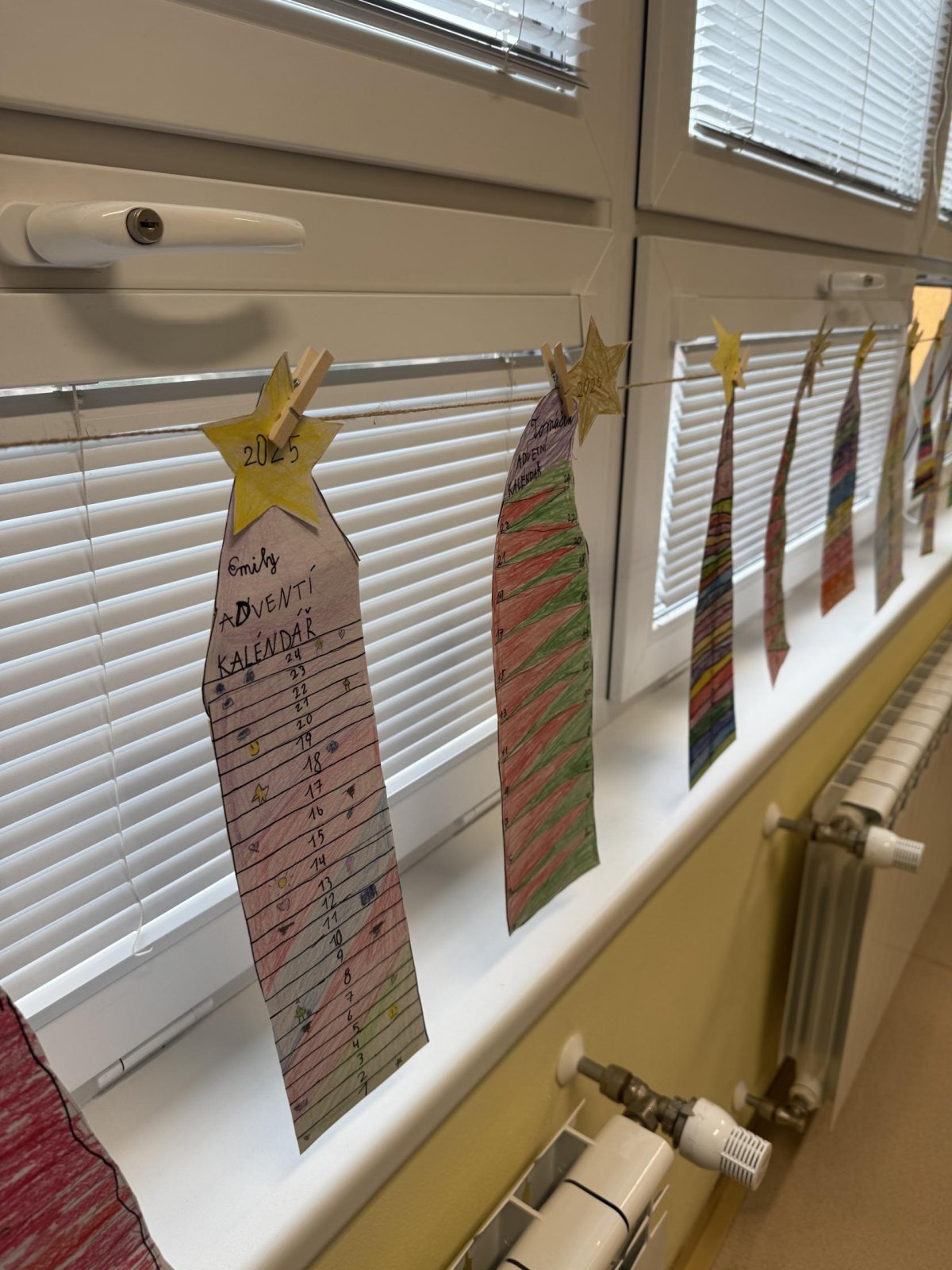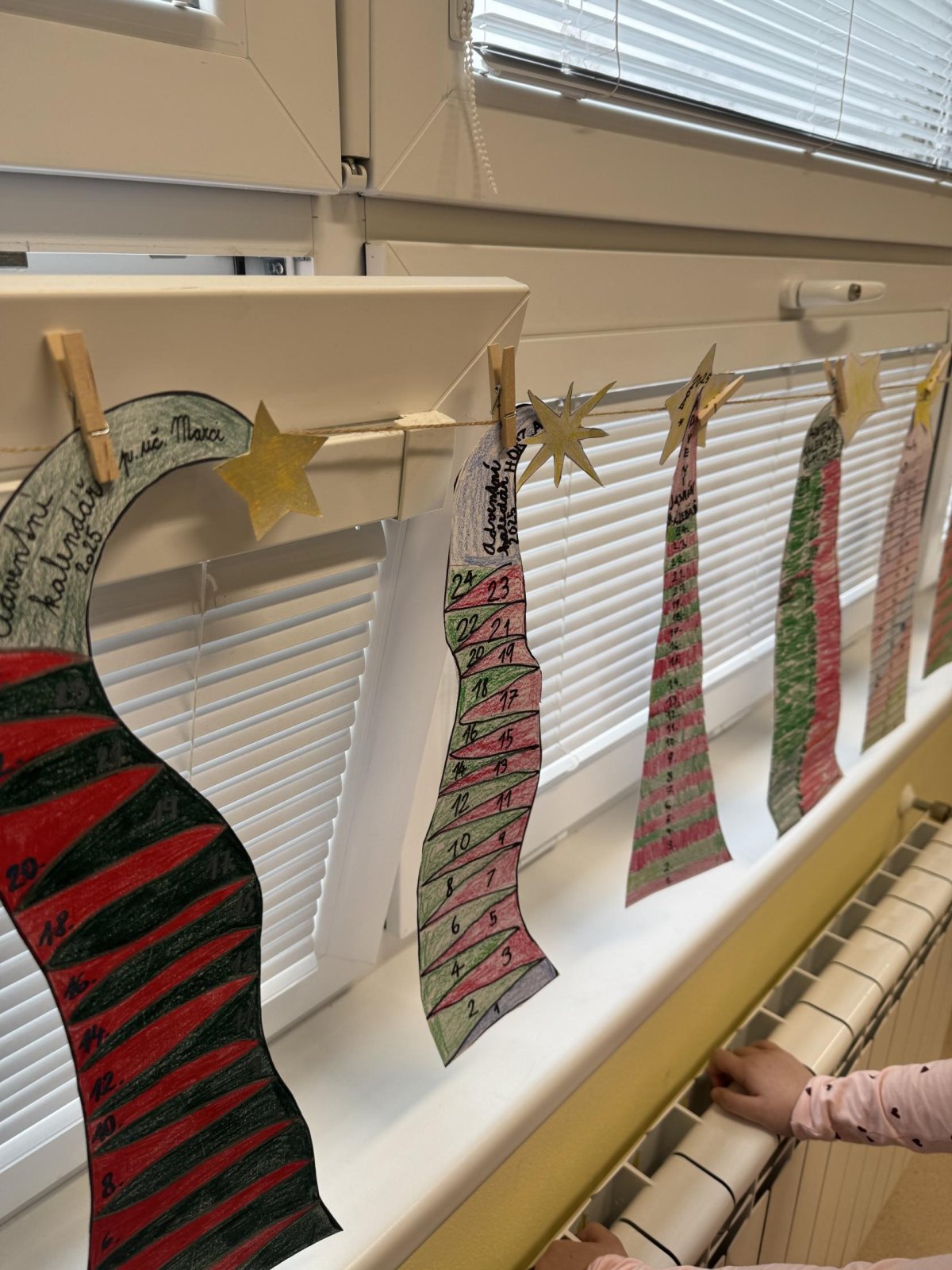 V pondělí si každý z nás vyrobil krásný adventní kalendář v podobě vánočního stromečku. Každý stromeček má 24 políček a my netrpělivě každý den jedno políčko odstříháváme a nemůžeme se dočkat Vánoc!